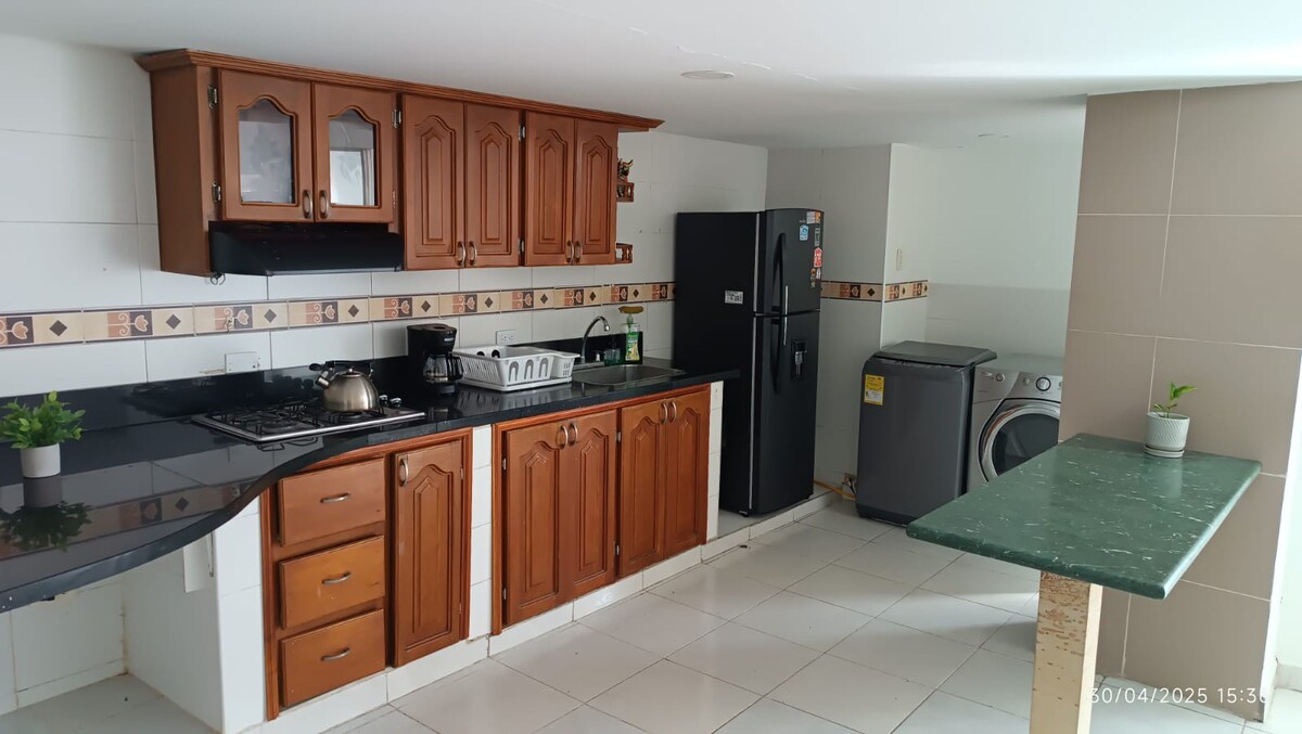 Upplev Rodadero Sur-upplevelsen ett stenkast från stranden! Utsikt över havet och Sierra Nevada, perfekt för avkoppling. Wi-Fi med fiberoptik och fullt utrustad lägenhet. 🌴 Inkluderar 4 stolar och ett bärbart kylskåp för stranden. • Minimarknad på bottenvåningen. 📍 Lungt villaområde, 14 minuter från flygplatsen. ✨ Perfekt för familjer eller par som vill ha komfort och ett bra läge. 🌴 Santa Marta har ett varmt klimat, så det finns ingen varmvattenberedare; duschen har rumstemperatur.
