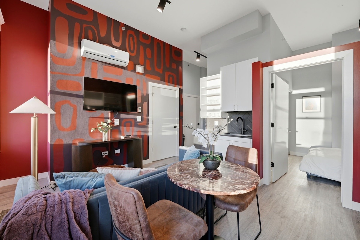 Upptäck urban lyx i vår 2BR, 2BA Gold Coast tillflyktsort. Denna eleganta lägenhet har en varm öppen spis, eleganta bänkskivor i granit och en mysig layout. Fördjupa dig i stadslivet när det är som bäst, mitt i hjärtat av Chicagos prestigefyllda Gold Coast-grannskap. Vårt boende är perfekt för både affärs- och fritidsresenärer och kombinerar modern komfort med den livliga energin i ett av stadens mest eftertraktade grannskap.