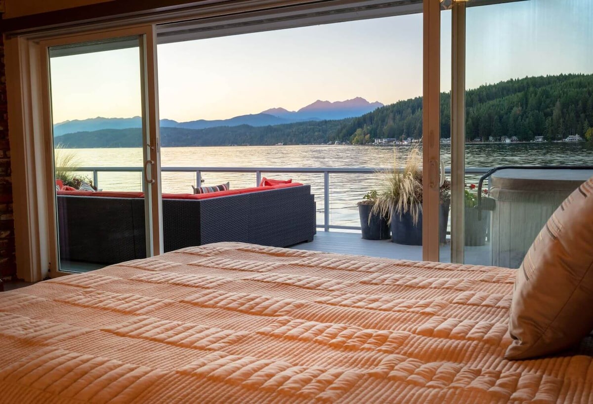 Denna Hood Canal-retreat ligger precis vid stranden och är så nära vattnet att det känns som om du flyter vid högvatten. Med 180-graders fri utsikt, varmt badvatten och direkt tillgång till stranden är detta den ultimata flykten från Pacific Northwest. Vakna till sjöfåglarnas rop, smutta på ditt kaffe på däck medan sälar och uttrar glider förbi, och tillbringa sedan dagen med att paddla kajak eller skörda färska skaldjur. Koppla av med en kvällscocktail i handen – det är så här drömmarna om att bo vid vattnet ser ut.