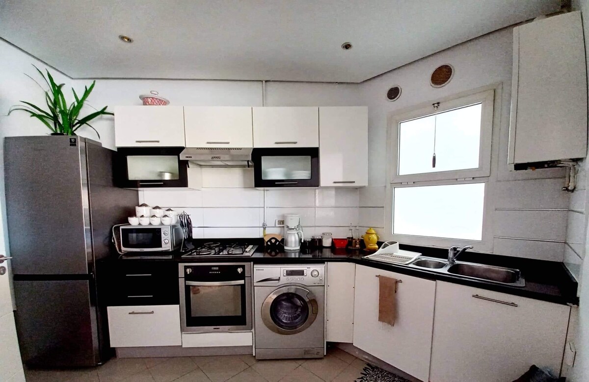 VÀlkommen till lÀgenheten, din drömsemester i Mahdia, Tunisien! Njut av en lyxig lÀgenhet med exceptionell havsutsikt, direkt tillgÄng till strÀnder och alla moderna bekvÀmligheter: 98"TV, PS5, Netflix, höghastighets Wi-Fi och premiumtjÀnster. Lev en unik upplevelse i Tunisien, mellan hav, himmel och absolut komfort. Perfekt för en oförglömlig semester i Mahdia, familj eller par. Boka din drömvistelse i Tunisien nu!