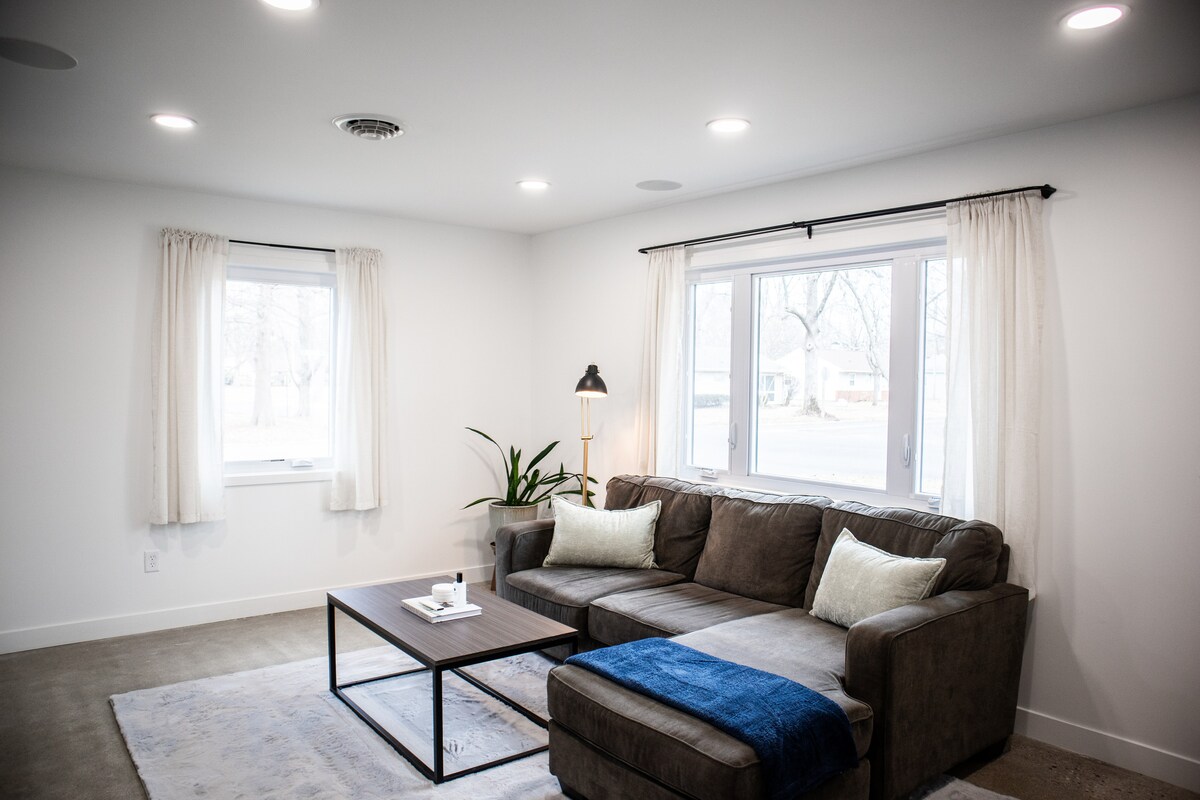 Bo på ett av Champaigns topprankade Airbnbs, beläget i ett lugnt grannskap nära UIUC! Detta vackert ombyggda hem med 2 sovrum har ett modernt kök med vitvaror i rostfritt stål och bänkskivor i granit. Vardagsrummet erbjuder en plysch sektion och smart-TV. Båda sovrummen har king-size plyschmadrasser för vilsam sömn. Ett spa-liknande badrum, garage för 2 bilar och en fridfull bakgård kompletterar vistelsen. Perfekt för besökande familjer, par, resande proffs och längre vistelser!