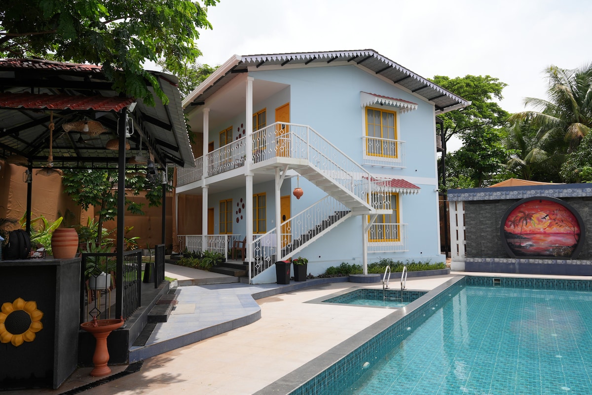 1BHK med pool @ Lykke, 2 min bilresa till Colva Beach