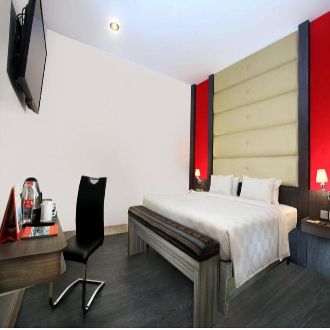 Deluxe Room 18.0m² Maks. 2 Tamu bed-type-icon 1 Double / 1 Twin Wifi Kamar bebas asap rokok Fasilitas Populer TV TV icon Deskripsi Kamar Deluxe Room Fasilitas Lain Makanan & Minuman Makanan & Minuman icon Air Minum Kemasan Gratis Fasilitas Kamar Fasilitas Kamar icon AC Kamar Mandi Pribadi Peralatan Mandi Gratis Shower Televisi Konektivitas Konektivitas icon WiFi Gratis