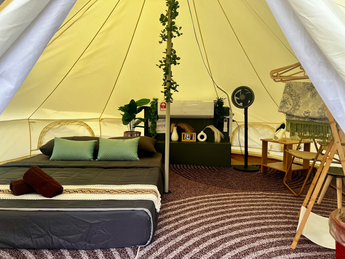 Hotellet har 3 rumstyper, en typ av rum med allmän pool och en typ av rum med privat pool samt en typ av tält med 3 sovrum. Hotellet har också ett allmänt poolområde. Efter incheckning kommer hotellet att tillhandahålla passerkort till det offentliga poolområdet.Vårt campingtält är utformat för familj och vänner som reser tillsammans. Det är rymligt, bekvämt och avkopplande.Rumstypen inkluderar 3 separata sovrum (2 kingsize-sängar + 1 enkelsäng), oavsett om det är en familjeresa, en sammankomst med vänner eller en semester för flera personer, kan du enkelt checka in. Tältet är utrustat med en mjuk och bekväm säng, sval luftkonditionering, och du kan helt koppla av så fort du lägger dig, så att tröttheten av resan långsamt försvinner.Njut av en lugn och avkopplande semester i en naturlig miljö, som kombinerar en camping atmosfär med en bekväm vistelse. Perfekt för familjer och vänner som vill bo tillsammans och dela stora semesterupplevelser.