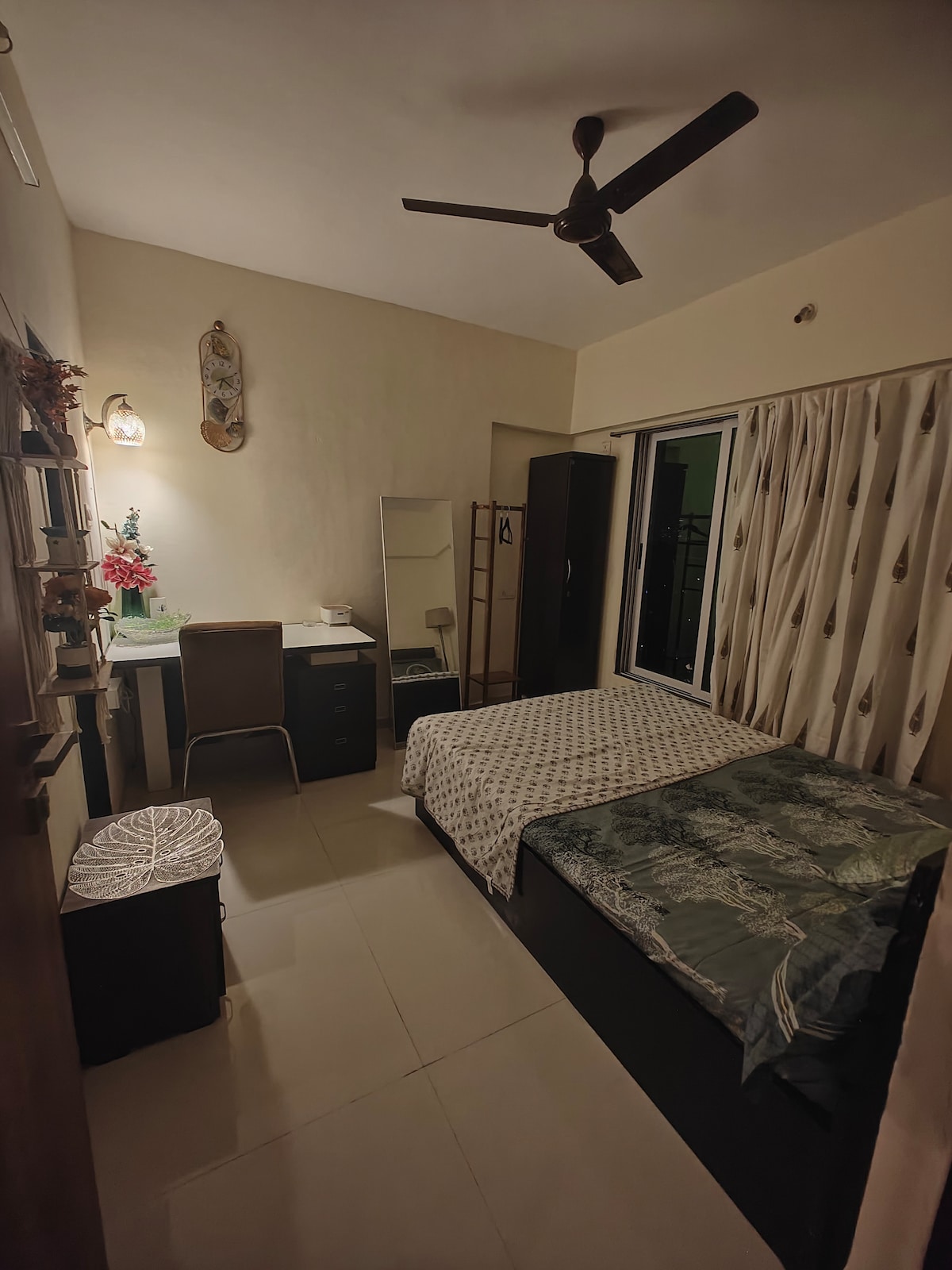 Välkommen till vår mysiga svensexa! Gå bara 5 minuter till matvaror och 15 minuter till Malad Metro/Railway; Infinity Mall ligger i närheten. Njut av Jio WiFi, en ombonad säng, luftkonditionering och ett skrivbord. Vår terrasslägenhet erbjuder tillgång dygnet runt till en privat terrass för kaffe/chai och arbete. Ditt personliga badrum. Endast ensamma gäster; rökning tillåten på terrassen. Inga fester eller övernattande gäster. Även om det inte finns något kök kan hemlagade måltider ordnas. Leveransappar som Swiggy, Zomato, Blinkit betjänar vår plats på några minuter.