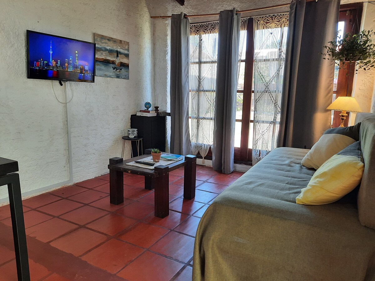 Vi bjuder in dig att njuta och koppla av med din partner, familj eller vänner i en grön, lugn miljö, nära en av de vackraste stränderna och några minuter från allt liv, restauranger och tjänster i Maldonado och Punta del Este. Bekvämt och modernt pensionat på 50m2, helt återvunnet. 5 minuters promenad (450 m) från Mansa Beach, hållplats 35. Barrio Pinares, ett av de vackraste. Buss Montevideo 450m, lokalbuss 100m (10' Maldonado, 15' Punta del Este). Butiker 1200m.