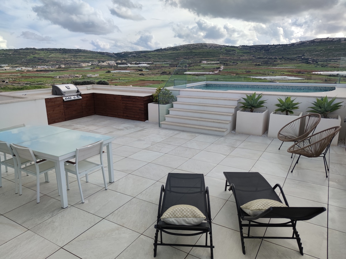 Panorama Lounge ligger i den lugna och fridfulla byn Mgarr, nära några av de trevligaste sandstränderna och spektakulära solnedgångsplatser. Lägenheten har en privat pool (tillgänglig året runt och uppvärmd till en genomsnittlig temperatur på 27 grader Celsius) med inbyggd jacuzzi, samt en enorm terrass med fri landsbygdsutsikt. Panorama Lounge är idealisk för den som är ute efter en unik och lugn semester.