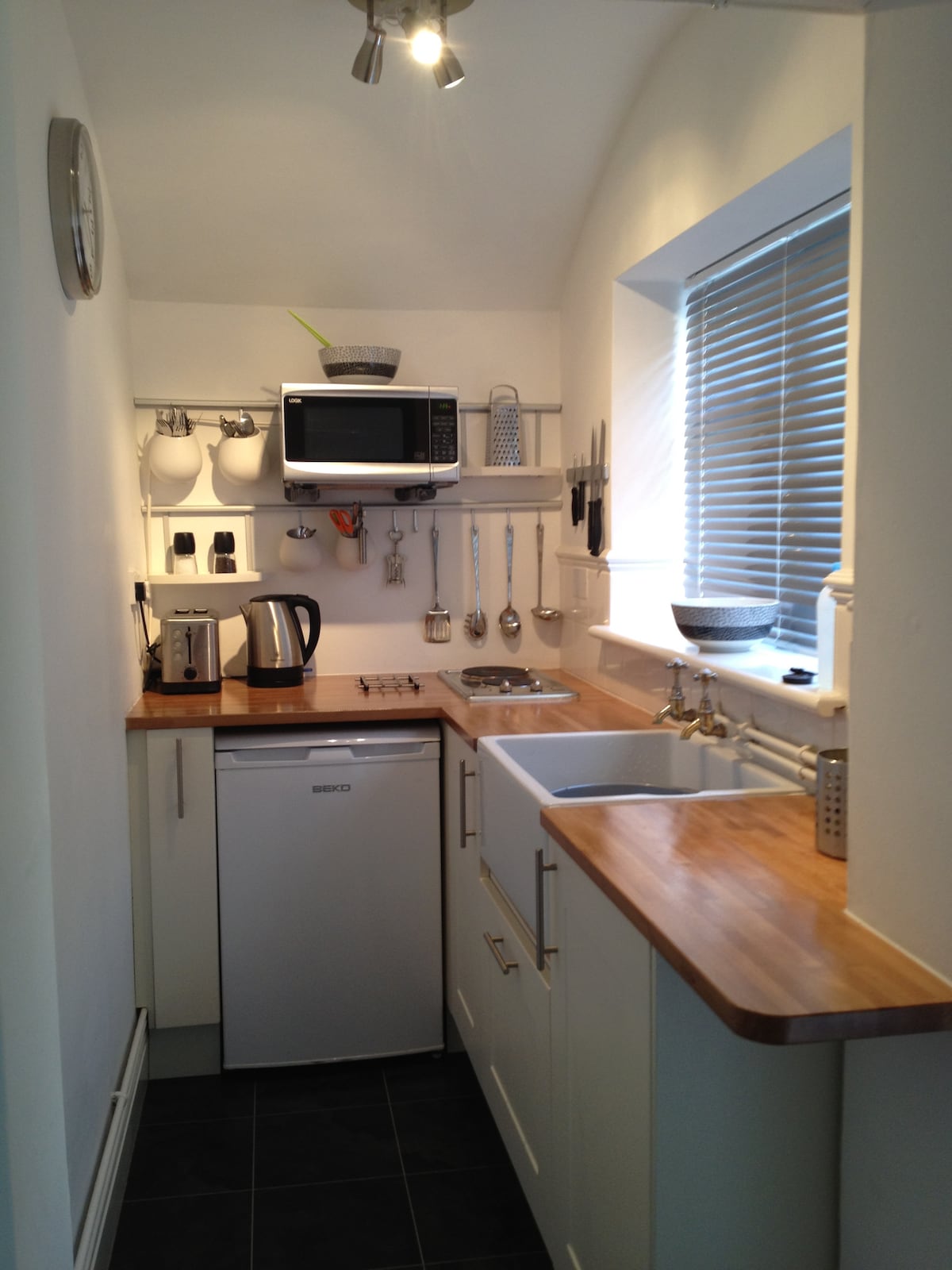 Nyligen renoverad och gömd privat bakom elektriska grindar, en verkligt härlig privat parkland stil miljö av landskap mogna trädgårdar med utsikt över öppen landsbygd. Retreat är ett perfekt ställe att varva ner, stugan med ett sovrum har ett pentry med matlagningsfaciliteter och redskap, en dubbelsäng och våt rum, terrass med utsikt över ankdamm och fält, privat parkering för 2 bilar eller skåpbilar Mjölkte och kaffe ingår tillsammans med spannmål och crumpets. Toalettartiklar tillhandahålls