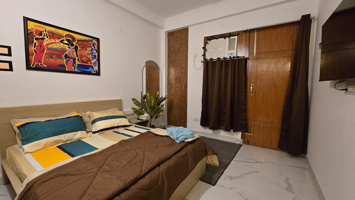 *Detta är ett helt, privat och oberoende rum, det ligger på bottenvåningen *Rummet har en separat privat ingång, för att komma och gå när som helst. *5 minuters promenad från tunnelbanestationen Malviya Nagar. *Luftkonditionering, rent rum, Wifi, smart-TV med grundläggande köksbestick. *Avgiftsbelagd tvätt och mat. *Litet köksutrymme. *Parvänligt. *RO, Geyser, Arbetsyta, Kylskåp. *Skicka bara ett meddelande till mig om du behöver ytterligare information.