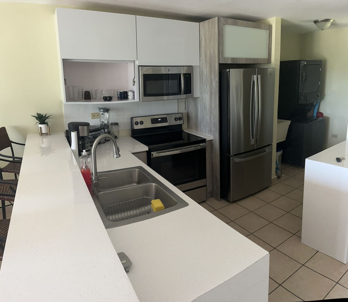 HAPPINESS BEACH APARTMENT är en modern men mysig tillflyktsort med strandtillgång bara 1 minuts promenad bort. Beläget i ett gated community med säkerhet dygnet runt, har den två pooler och en privat hörnlayout på bottenvåningen med balkong och terrass tillgång. Bekvämt nära mataffärer, El Yunque Rainforest, restauranger, köpcentra och mer! Perfekt för en avkopplande semester... Vi fortsätter att följa strikta rengöringsrutiner för din säkerhets skull.