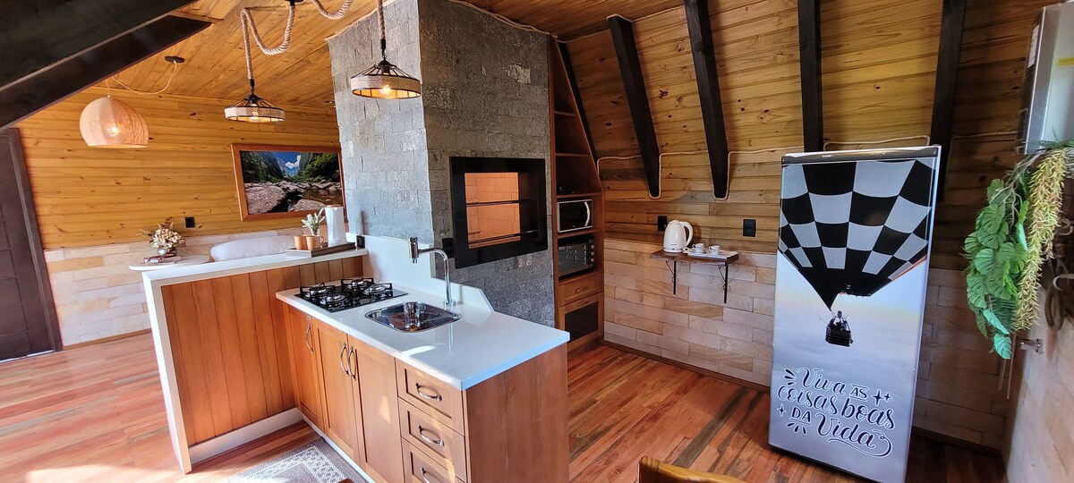 Ny och privat alpstuga, med en egen arkitektonisk modell. Tillhör AriMara Chalés, det är den första av fyra exklusiva enheter som värdshuset kommer att vara med. Beläget på en familjefastighet (Sítio Vó Mara) vars höjdpunkt är lugnet och skönhet som stället ger. Endast 3,5 km från huvudstaden Canyons and Balloons, Praia Grande/SC, 21 km från entrén till Aparados da Serra nationalpark, och 40 km från den södra kusten av Santa Catarina och norra Rio Grande do Sul.