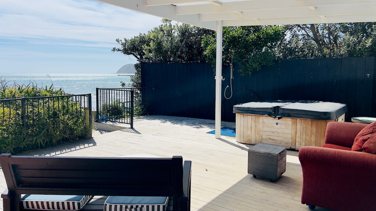 Luxury, one of a kind beach front accomodation Breathe, relax and marvel at the expansive views of the ocean on your doorstep and majestic Kapiti Island. Close the door and its your own private getaway. Watch the moonlit ocean and stars on the horizon. Perhaps this just is heaven ! Enjoy this haven with someone you love, or take the solitude, and space to escape This studio has its own walk in shower with rain head and a private spa for your exclusive use.
