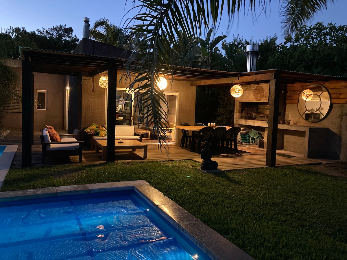 Beläget i Montoya-området, 300 meter från en av de vackraste stränderna i hela Punta del Este. Huset är praktiskt taget helt nytt, en riktig oas! Huset har 4 sovrum och 2 badrum. Två sovrum med dubbelsäng (ett av dem med badrum och terrass) två sovrum med två enkelsängar. fullt utrustat kök Wifi TV Pool Grillplats med matplats och utomhusvardagsrum. Stor trädgård Utrymme för att parkera bilen inne i huset.