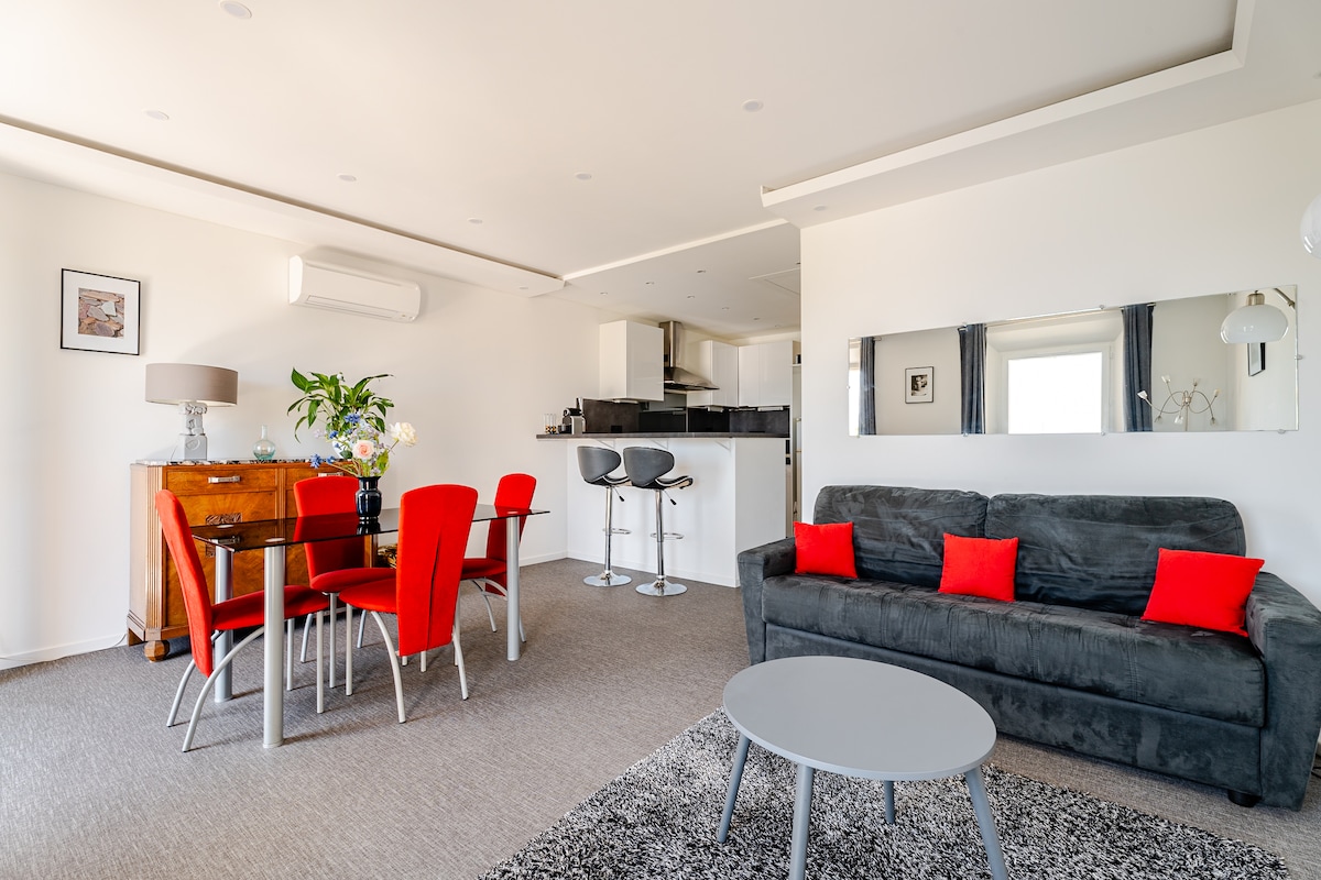 Elegant, modern, fullt utrustad nyinredd lägenhet med 2 sovrum med privat trädgård och egen ingång separerad från huvudfamiljens hem. Lägenhet nära alla bekvämligheter stormarknad, restauranger, strand, slott, golfklubb, driving range, marina osv. Perfekt beläget för att besöka franska rivieran många sevärdheter Cannes, Lerins Islands, Nice, Monaco, St Tropez etc. På gatuparkering i lugnt bostadsområde precis intill fastigheten. Trädgård delas med ägarens vänliga katter.