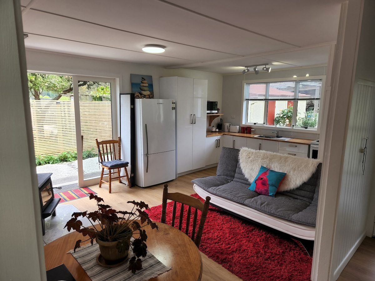 Ingen städavgift, minst 2 nätters vistelse. Stugan är endast ett sovrum, toalett, dusch och kök ligger separat några meter bort. Du befinner dig på spetsen av en halvö i Whanganui-floden. Ligg i sängen och titta på fisken stiga på morgonen, sitt runt elden på kvällen och njut av lugn och ro efter ett dopp. Bergen ligger 40 minuter bort, kajakpaddlingsturer 10 minuter bort och Taumarunui ligger 12 km bort. Ta inte med vatten, säkert vatten tillhandahålls. Det uppskattas mycket att plast används i så liten utsträckning som möjligt. Inga husdjur.