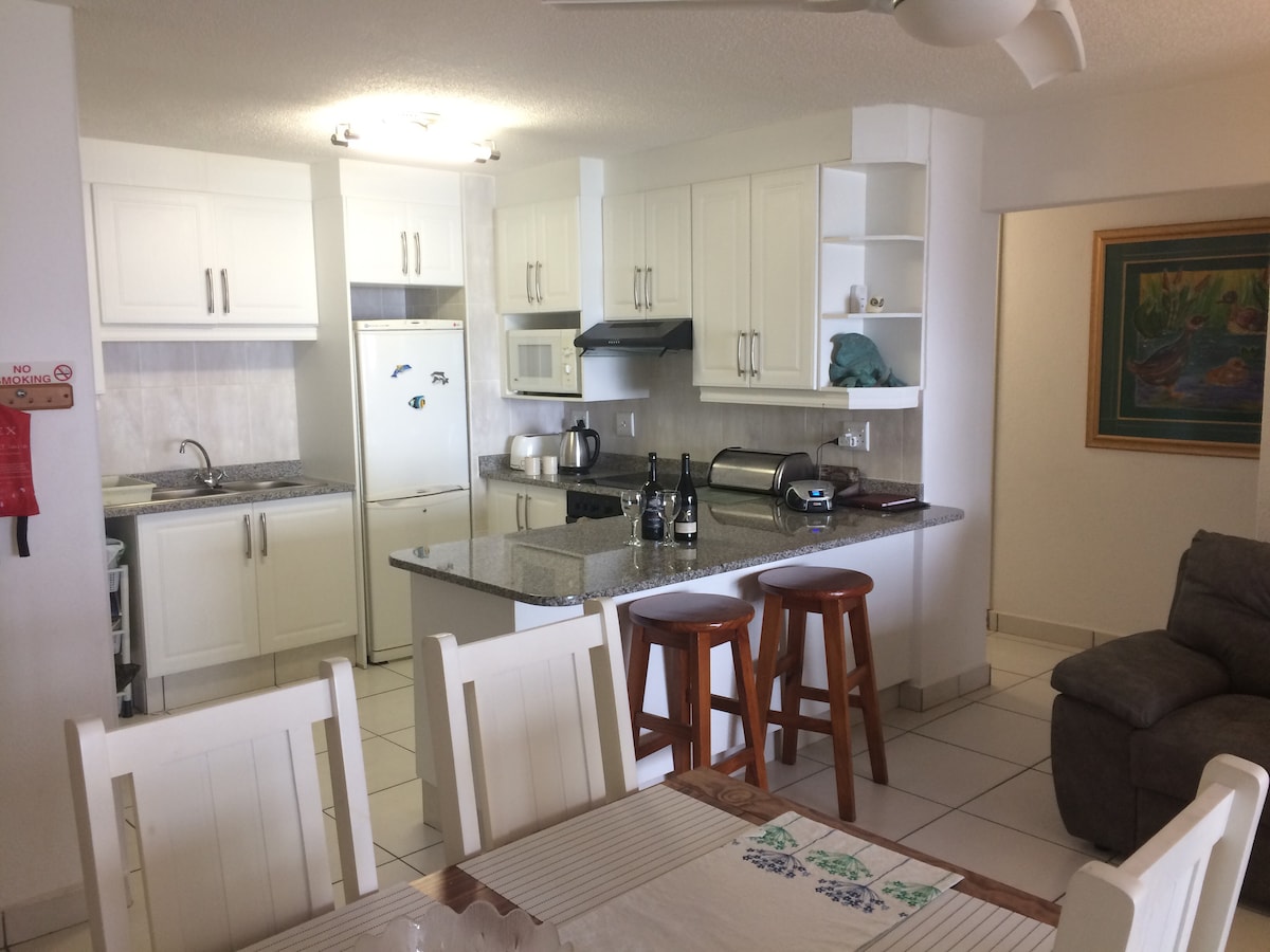 Laguna La Kreta ligger i utkanten av lagunen som har ett vattenfall och port tillgång till stranden nedanför. Lägenheten som nyligen har renoverats i hela är på marknivå med spektakulär havs- och breaker-utsikt från vardagsrummet och sovrummet. Uteplatsen frontage har en gas braai och lounge svit som kan sitta 6 personer. Ett bra ställe att njuta av en braai med den bästa havsutsikten En speciell och säker plats som kommer att ge dig den semester du letar efter - njut!