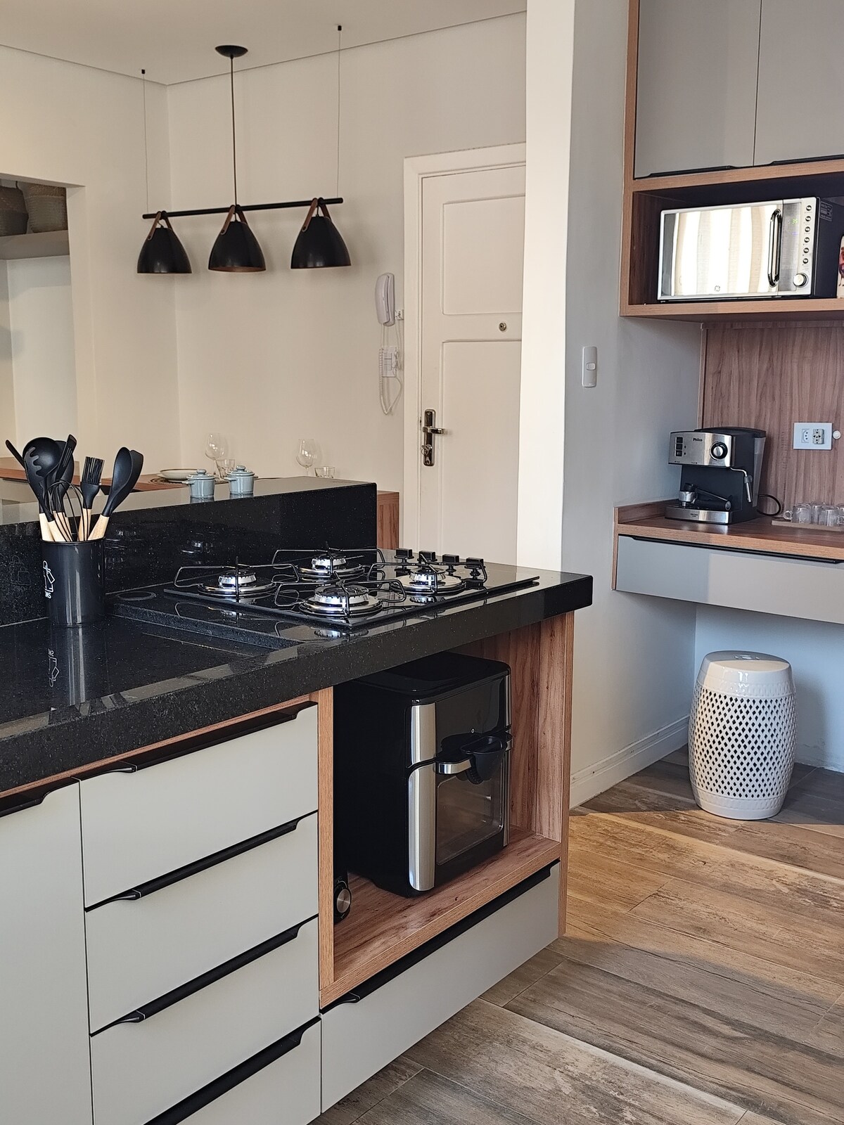 Studio moderno, luxuoso ,de 47m², localizado em condomínio residencial à Rua Duque de Caxias, 880, a passos de distância do Cambuí. Próximo a bares, restaurantes, supermercados, cafés e muito mais. Lindamente decorado e equipado, cama tamanho queen, closet, água quente em todas as torneiras, cafeteria Nespresso, 2 aparelhos de ar condicionado, TV 50" giratória (acesso da sala e quarto), ducha higiênica no banheiro e estação de trabalho para duas pessoas. Condomínio com lazer incrível.
