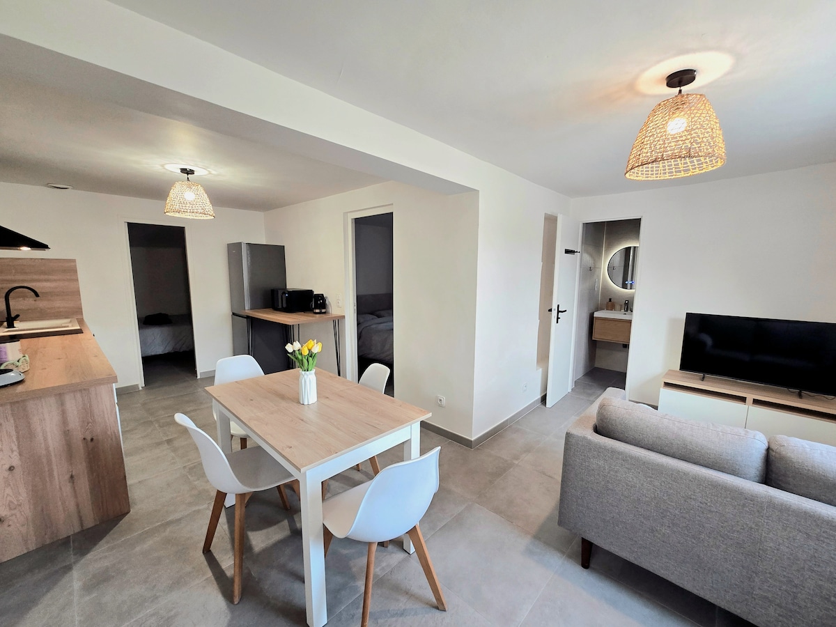 Njut av en bekväm vistelse med familj eller vänner i denna rymliga 80 m² 2-rumslägenhet, idealiskt belägen i Saint-Victoret, mellan Aix-en-Provence och Marseille, bara 10 minuter från Marseille flygplats. Två stora sovrum, en bäddsoffa, ett fullt utrustat öppet kök, en stor terrass med matplats och grill, och central luftkonditionering erbjuder dig komfort, lugn och friskhet året runt.