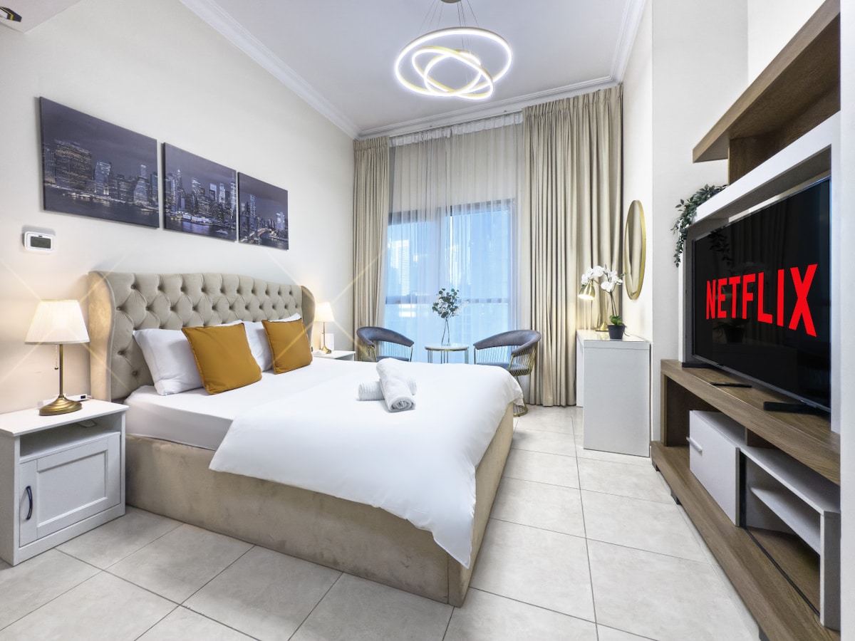 Välkommen till ditt lugna utrymme på Marina Promenade. Din lägenhet är ljus, bekväm och utformad för enkla, avkopplande vistelser. Njut av ett mysigt vardagsrum, mjuka sängkläder, snabbt Wi-Fi, parkering och tillgång till pool och gym. Kliv ut och du är bara några minuter från JBR Beach, Marina Mall, Pier 7 och Metro, med kaféer och Marina Walk precis vid din dörr. Oavsett om du är här för att koppla av eller utforska staden är din vistelse enkel, central och vackert bekväm.