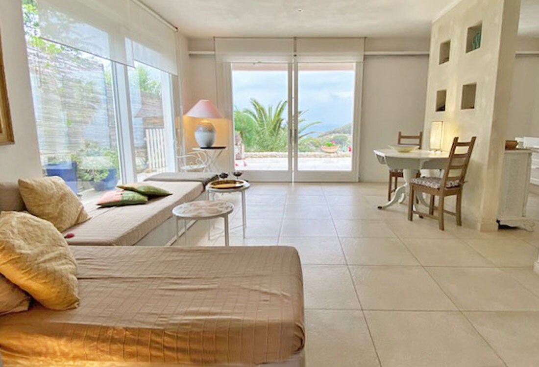 Tvårumslägenhet i en liten villa på 70 kvm med ett fantastiskt läge på en kulle mellan Marina di Campo och den magnifika stranden i Galenzana i den underbara parken i det toskanska skärgården. Lägenheten med havsutsikt består av ett stort vardagsrum med två bäddsoffor, en enkel och en dubbel. Det finns ett stort kök och ett sovrum med dubbelsäng. Den har en privat parkeringsplats utomhus. Från huset kan du nå två stränder på fem minuter: Marina di Campo och Galenzana.