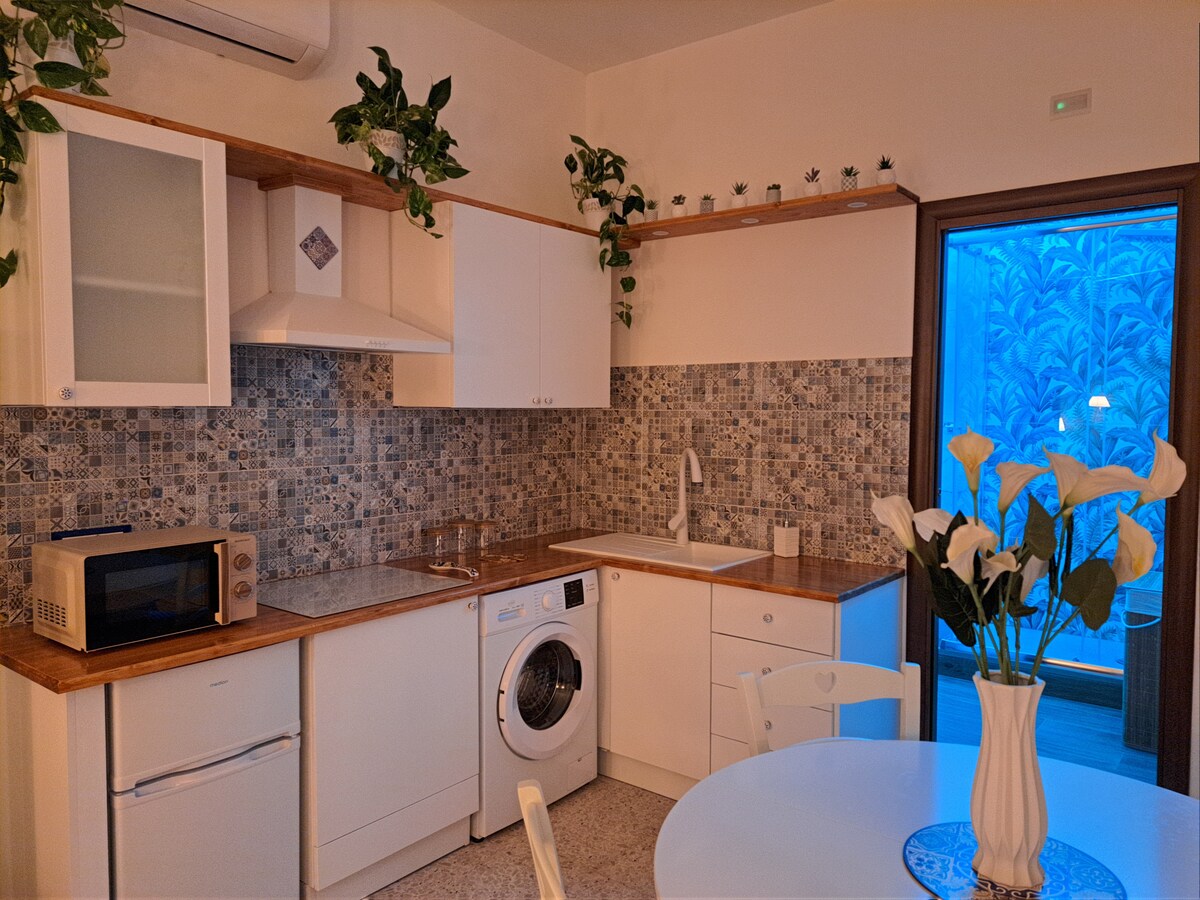 Upplev en direktkontakt med havet och låt dig förtrollas av de magiska färgerna i "Terrazza Blu". Detta exklusiva boende, som ligger på översta våningen i en charmig villa med utsikt över havet, erbjuder en fantastisk utsikt över en av de vackraste bukterna i Kalabrien. "Terrazza Blu" ligger bara några meter från den vackra stranden i Caminia, omgiven av den pittoreska naturen där det kristallklara vattnet möter de gröna uddena på Joniska kusten.