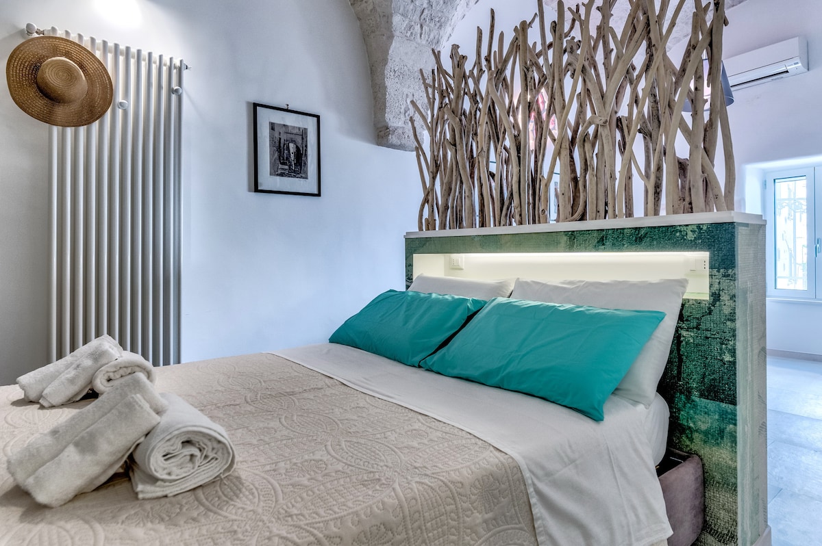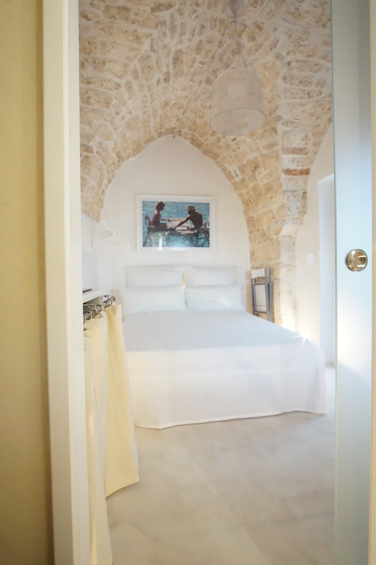 CIS: BR07401291000000188 CIN: IT074012B400033730 Upplev den magiska känslan av att befinna dig mellan dåtid och nutid: det är ett historiskt hem! De antika golven och stenväggarna utgör bakgrunden till en miljö inredd med designföremål, gammal keramik och lokala möbler. Den stora privata terrassen, med solarium och varm dusch, kommer att glädja dig: du kan koppla av med ett glas vin i solnedgången, njuta av solen på bekväma solstolar eller laga middag i en magisk apulisk atmosfär.