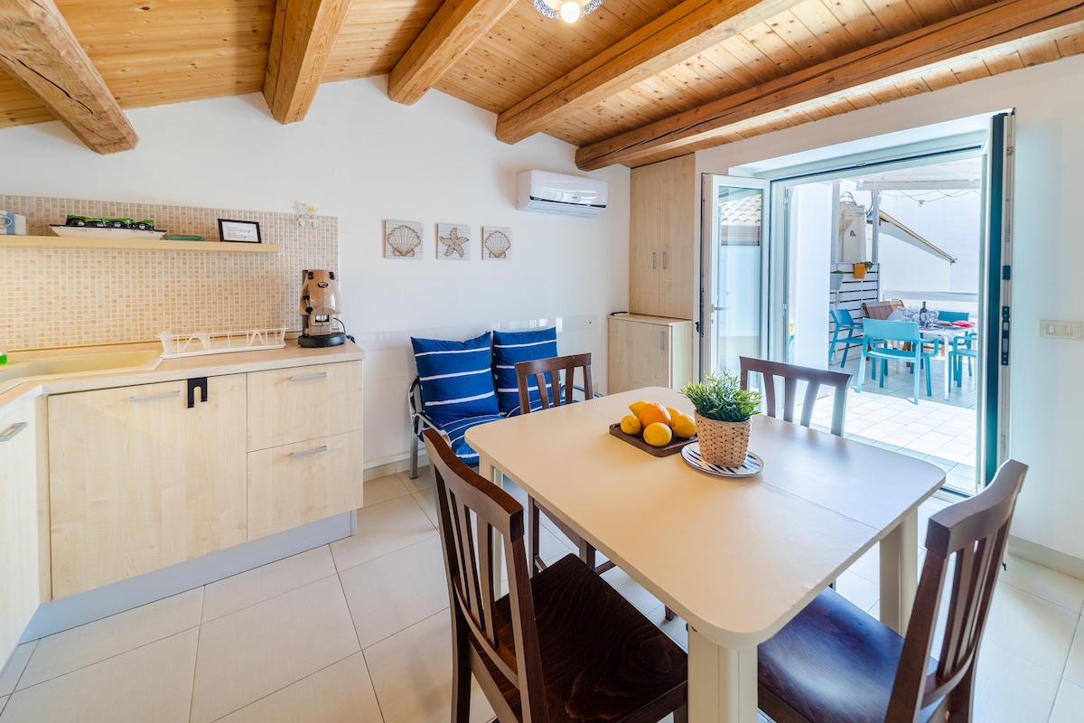 Vill du prova hur det känns att förbereda moka genom att förlora din blick i det oändliga blå havet eller laga mat omgiven av solnedgången och lamporna i hamnen? Här kan du! Tvåvåningsvilla utrustad med alla bekvämligheter. Privat trädgård med varm dusch och grillhörna, kök komplett med elektrisk ugn och mikrovågsugn, stort matsal-vardagsrum med bäddsoffa, 1 enkelrum, 1 dubbelsäng och 1 trippel. Ortopediska madrasser och dubbla kuddar, 2 kompletta badrum. Magisk takterrass!