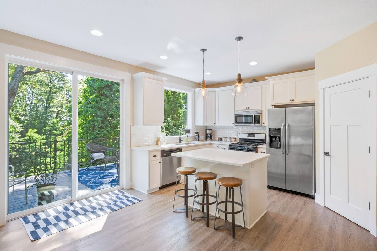 Vår Hideaway-studio är en mysig studiosvit som ligger inom gångavstånd från centrala Salem, delstatens Capitol och Willamette University. The Hideaway har total avskildhet, med egen ingång, badrum, pentry och tvättmaskin och torktumlare. Vårt grannskap ligger tillräckligt nära centrum för att njuta av promenader till lokala restauranger, butiker, Riverfront Park och mer. Motorvägen I-5 ligger 5 minuters bilresa från vårt hem, vilket gör det enkelt att ta sig till närliggande städer. *Se vintern/våren 2026 notering i fastighet*