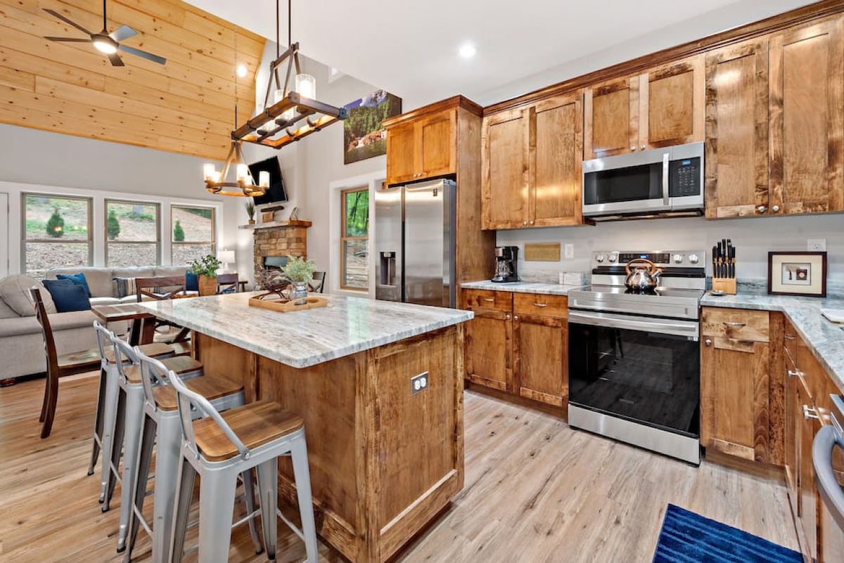 Carriage House och staden Morganton har ström och är redo för besökare. Detta pensionat ligger bakom ett historiskt hem i centrala Morganton. 1920-talets struktur har återställt originalytor: ett badkar med klofot, vintage handfat i badrummet och gårdshus handfat i köket. Nedervåningen har original träpärlbrädat tak. På övervåningen togs taket bort för att exponera taket och bjälkarna. Två eldstäder håller det mysigt — du kommer att ha en härlig plats att koppla av och lyssna på regnet på metalltaket.