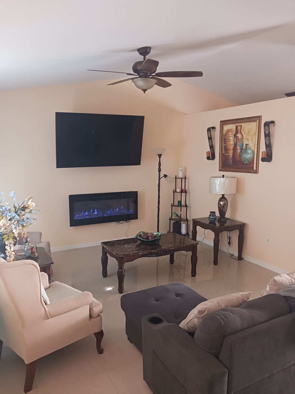Cozy home is 3 miles from Historic Downtown Ocala. Our home has 3 bedrooms/2 bathrooms, 4th bedroom is an open space office and Game room with queen sofa bed. -Exterior Kitchen -*1 KING BED -*1 QUEEN BEDS -*2 SOFA BED -*1 QUEEN AIR MATTRESS (please request when more than 10 guests) Plenty of windows to enjoy the sunshine state. We have a spacious living room with a large smart tv. ) Complimentary coffee, shampoo, conditioner and detergent is also available.