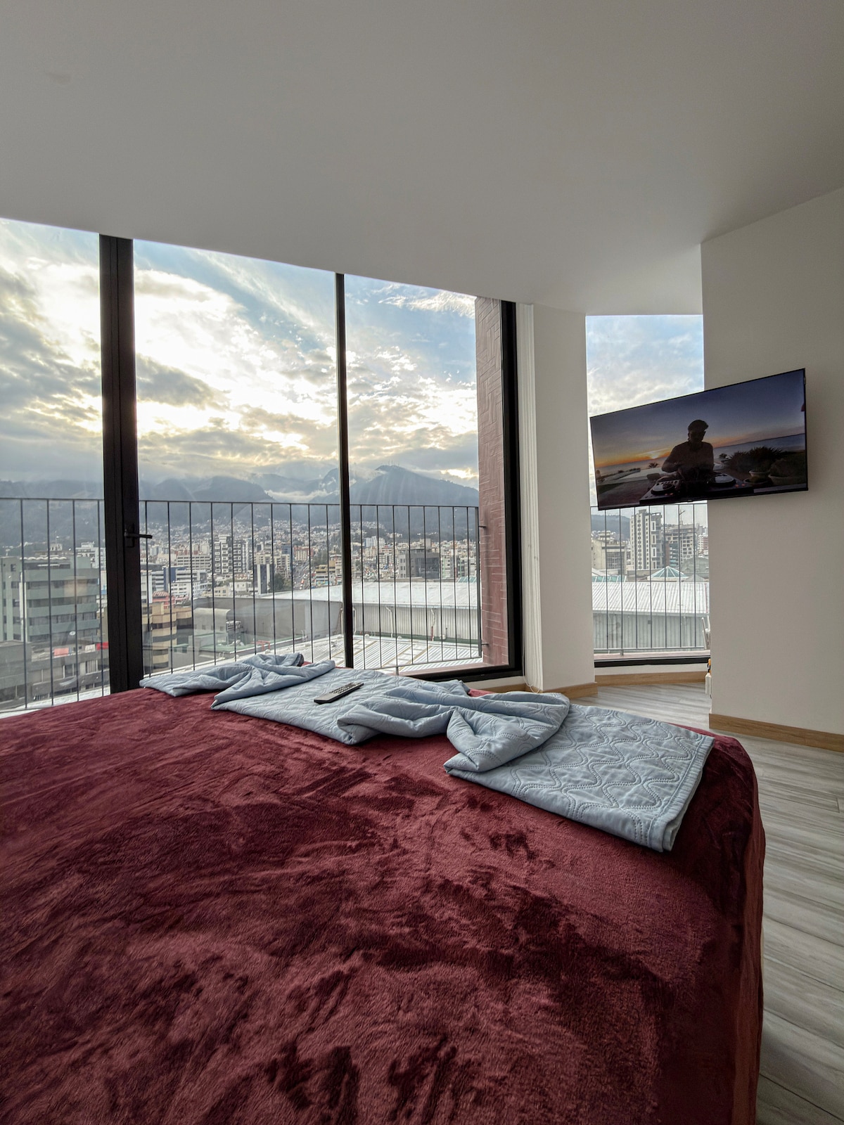 Komplett lägenhet på våning #11 med 1 dubbelsäng i sovrummet, 1 bäddsoffa i vardagsrummet, 1 & 1/2 badrum, max 4 gäster. TV 60" HD i sovrummet, Netflix, mörkläggningsgardiner, fullt utrustat kök med ugn, mikro och utsug, kaffebryggare, Wifi, vardagsrum, arbets- och matbord, balkong med utsikt över Pichincha vulkan, klädskåp, strykjärn, strykbräda, varmt vatten, handdukar, tvål och schampo
