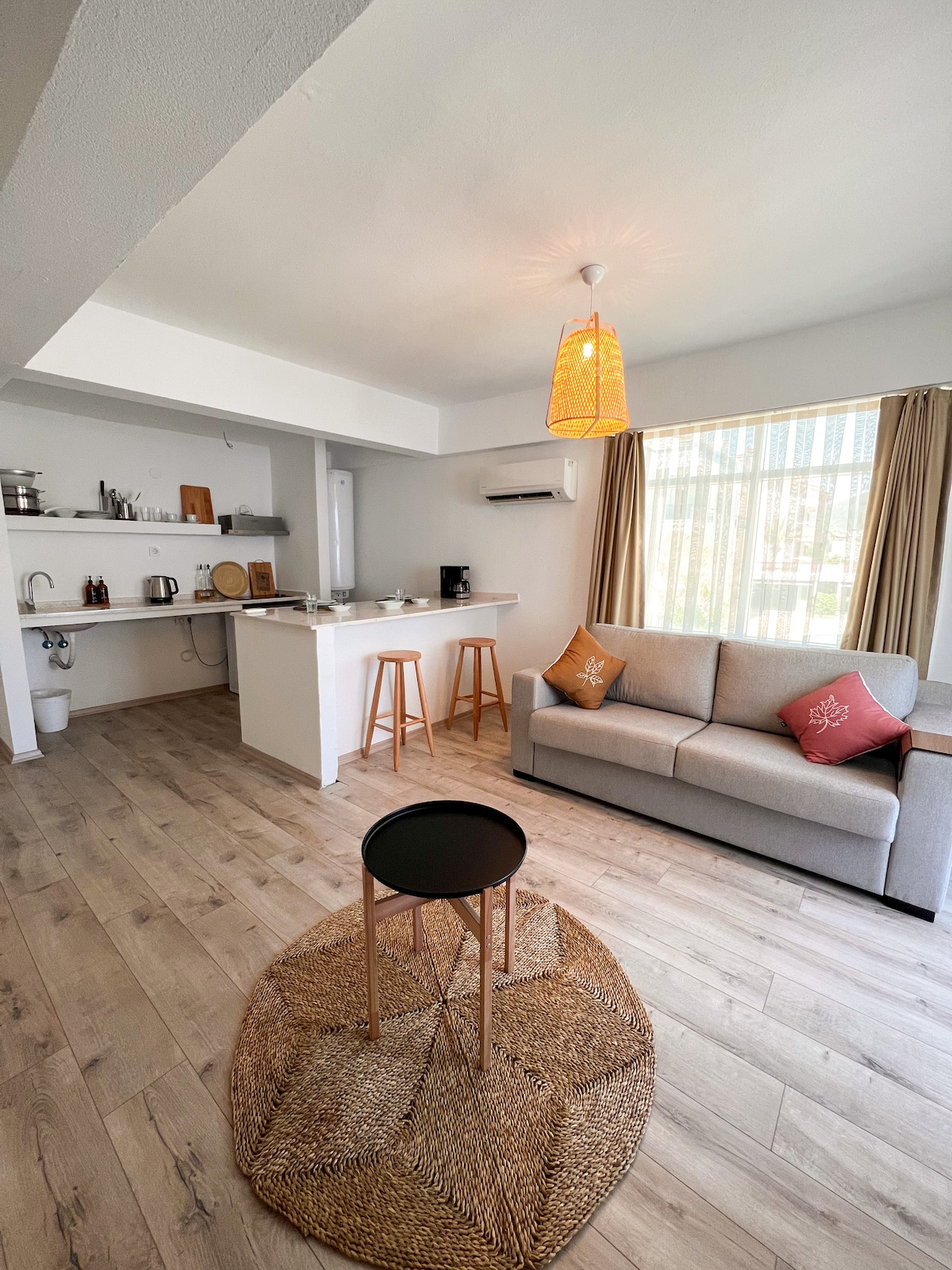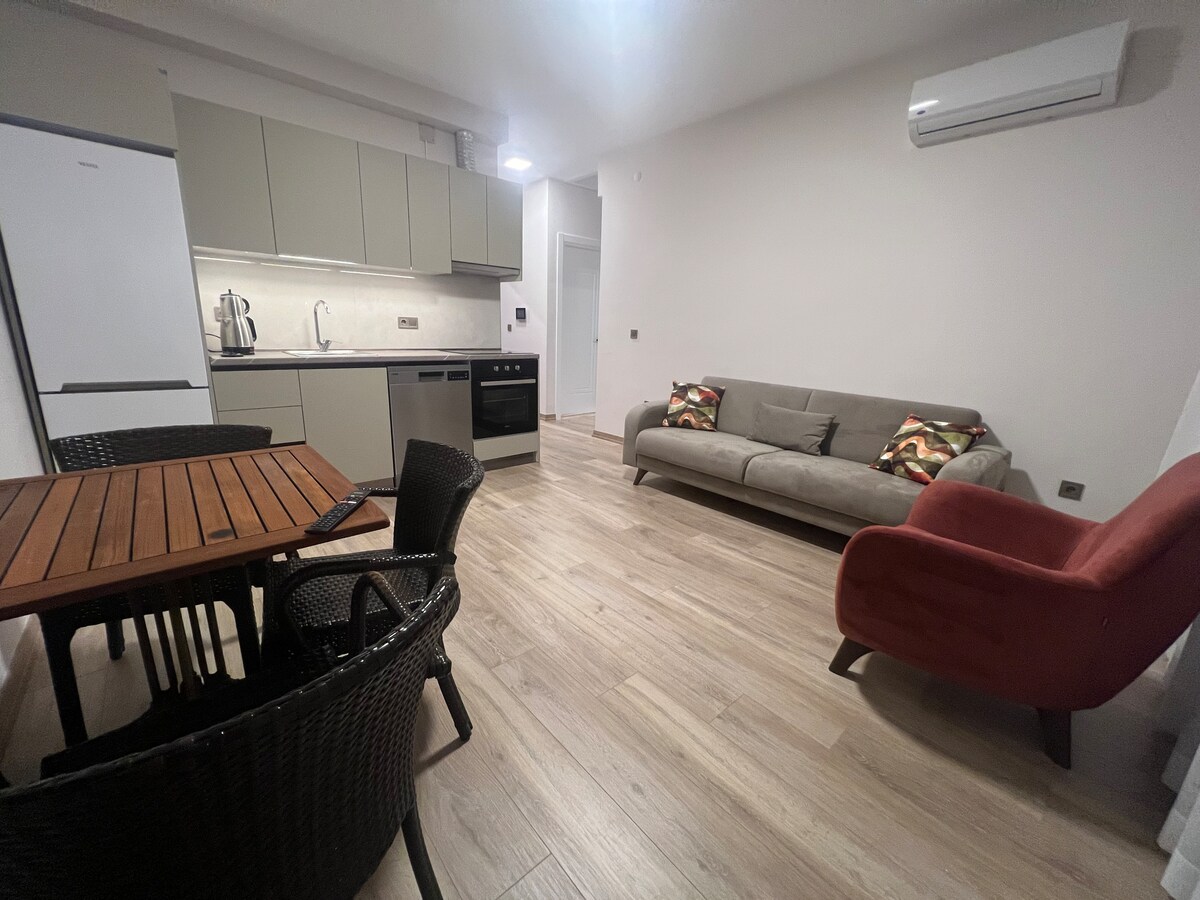 På Aloha Suite Homes erbjuder vi dig särskild service från bekvämligheten av hemmet under din semester. Vårt semesterhus, som ligger bara 2 minuters promenad från havet, ligger också mycket nära köpcentra, kollektivtrafik och banker. Vi strävar efter att våra gäster ska ha en lugn semester med vårt noggrant möblerade lyxiga semesterhus, 24-timmars reception och säkerhetstjänst, daglig sophämtning och daglig städning av lägenheten.