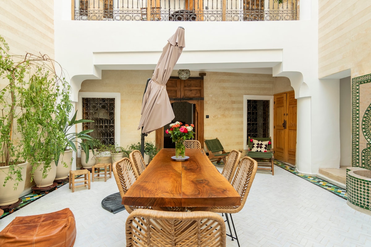 Dar El Hachmia är en genuin dold pärla. Det var Hachmias hem (gammalt berbernamn). Det går tillbaka till 1300-talet. Den restaurerades med traditionella material och förfädernas tekniker, och erbjuder alla moderna bekvämligheter. I hjärtat av Medina, lugn atmosfär och unik stil är dess största tillgångar. Hela riaden är tillgänglig, med 3 sovrum med privata badrum. Det inkluderar en uppfriskande pool på uteplatsen, uppvärmd pool på taket och Hammam för en upplevelse för livet.