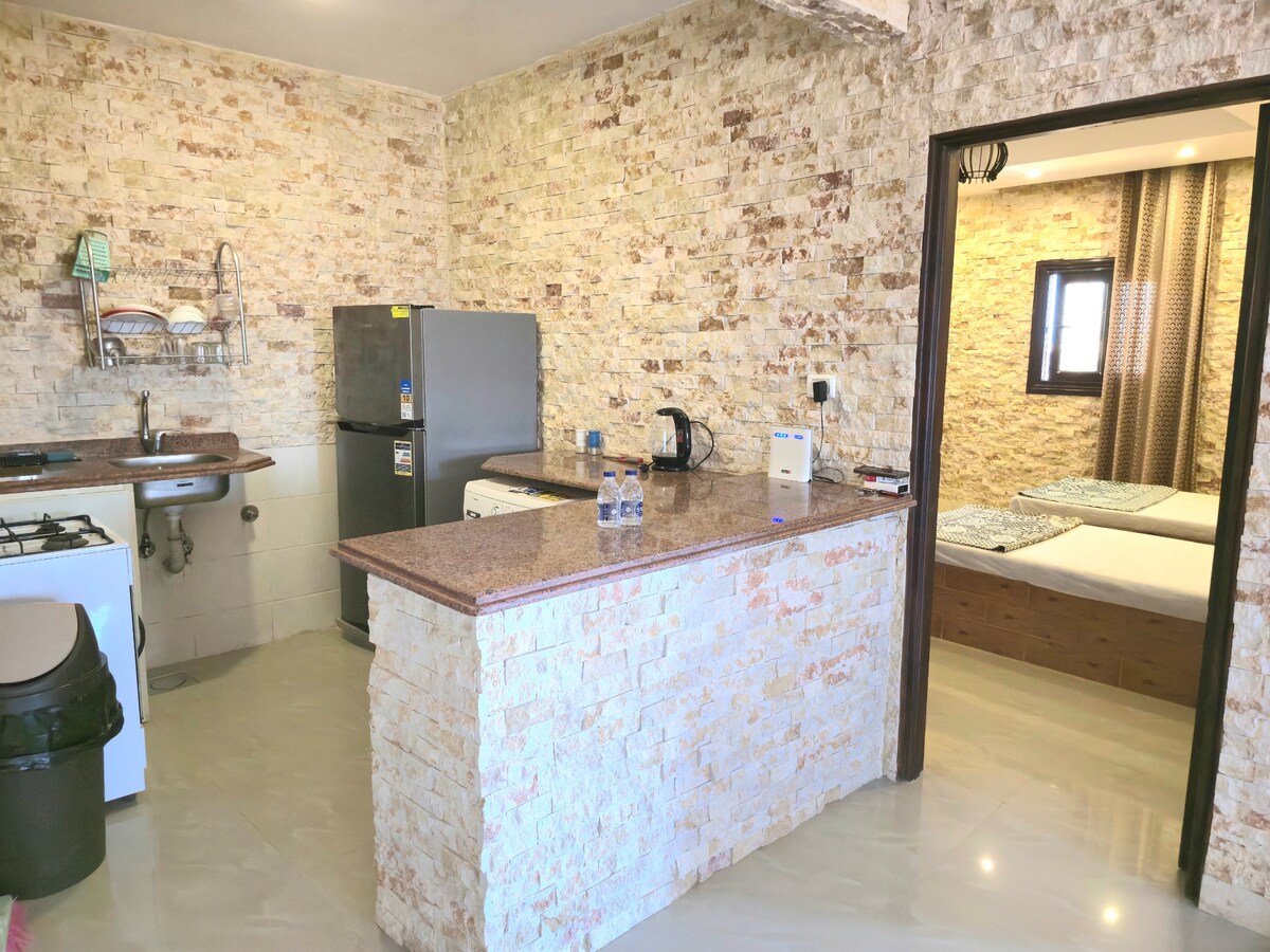 Koppla av med din familj eller partner på denna fridfulla tillflyktsort, bara 200 m från Matrouhs bästa strand (Obbayed). Njut av en privat studio med egen ingång i en grindad villa, med en trädgård och en mysig uteplats. Många aktiviteter, stormarknader och kaféer finns tillgängliga vid stranden.