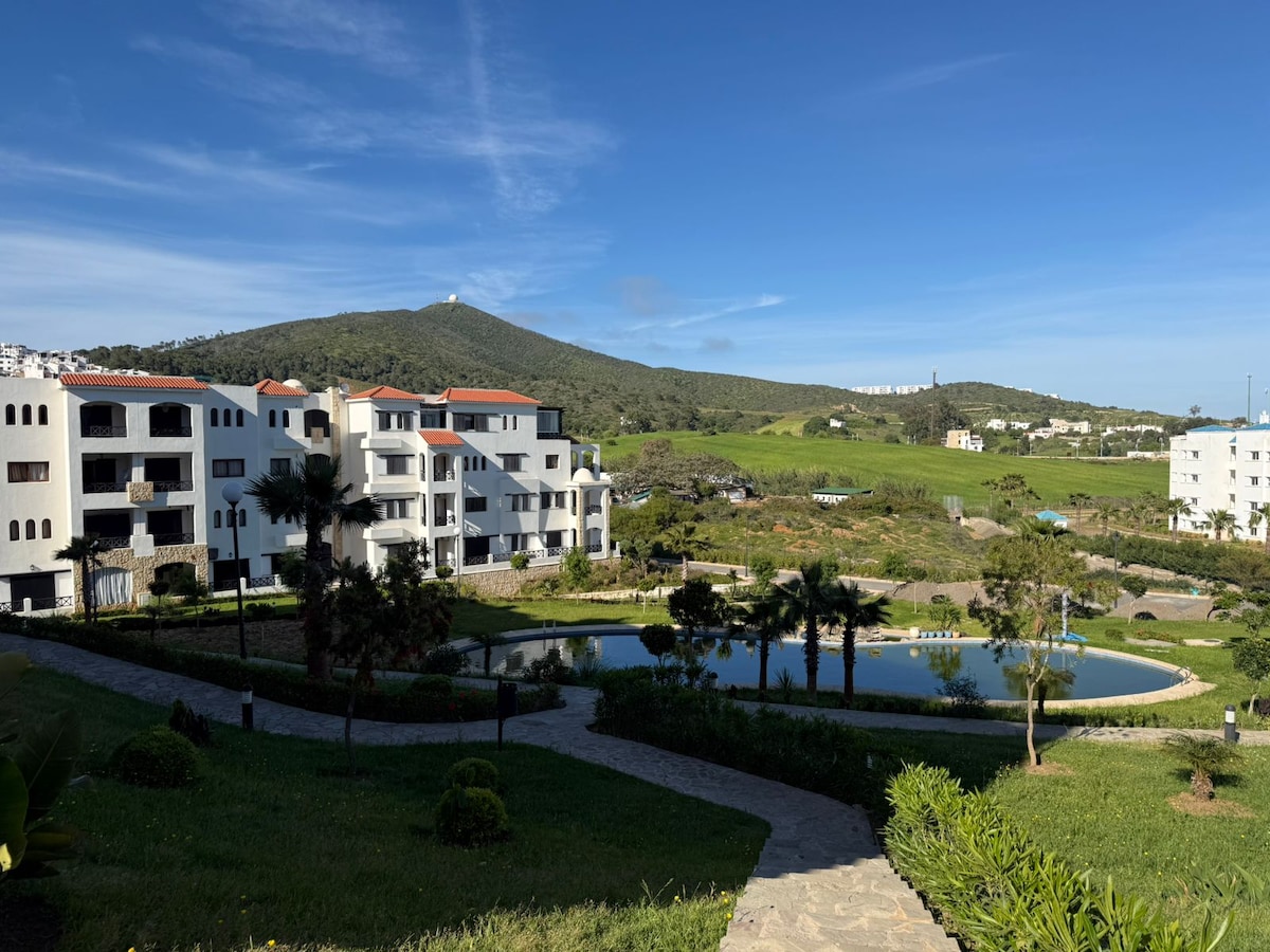 Fantastisk 3-bäddslägenhet med alla mod cons fullt möblerad med tillgång till 7 stora pooler, utanför gym, lekplats för barn, privat parkering 24hr säkerhet helt avskilt, gratis wifi, denna lägenhet kommer med fantastisk utsikt över bergen, gångavstånd till stranden, är denna lägenhet ligger i norra Marocko.