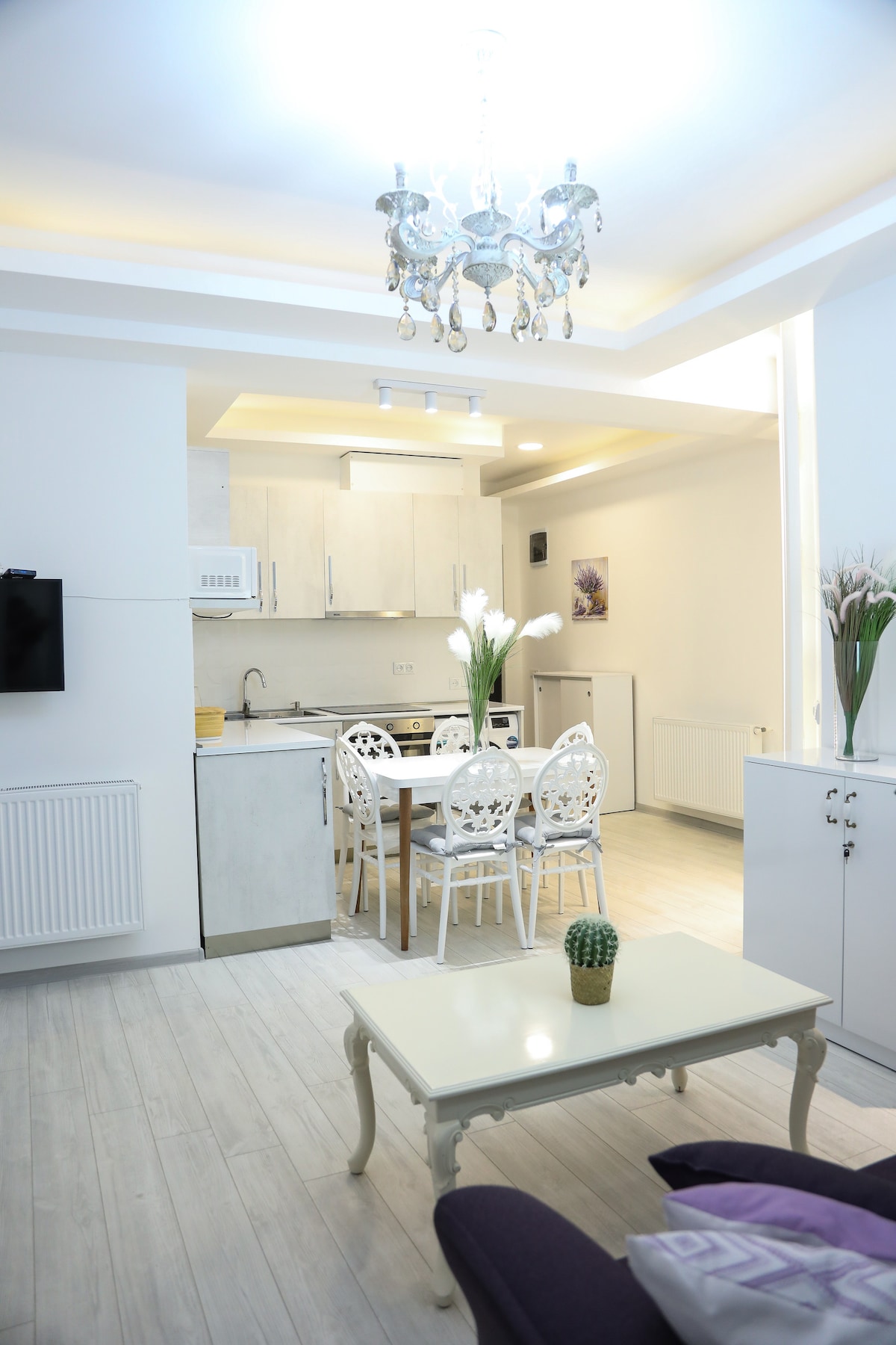 Have fun with the whole family at this stylish place. Apartment includes all necessary residential techniques and utensils. Located on perfect place. Markets are close to property, where you can buy all kind of products. Street is quiet and cozy. On first floor of building is located professional Laundry "Lavanda" Apartment is on third floor.