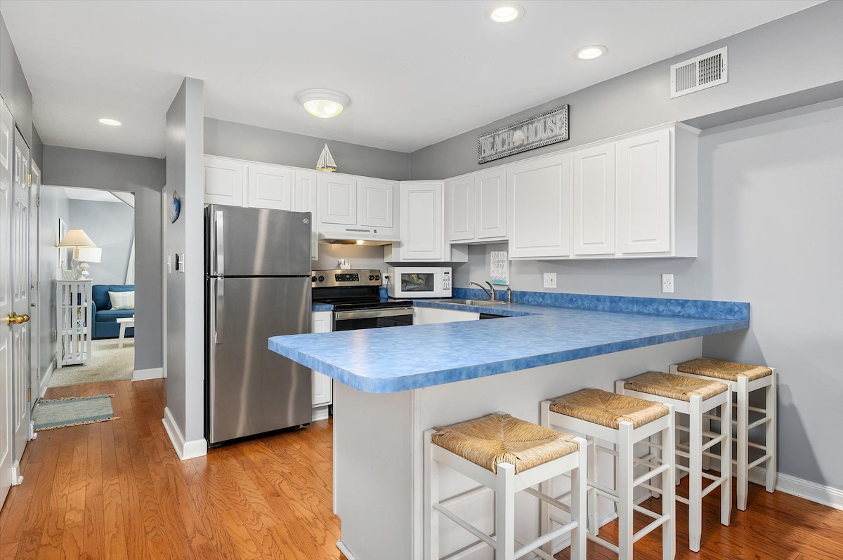 Steg till stranden! Helt renoverad, ljus, modern, ren lägenhet med balkongutsikt över havet. Lugnt North Ocean City läge med gångavstånd till restauranger, buss, 7-11, minigolfbana, biograf, parker, etc. Helt nya vitvaror och möbler. Gratis WiFi, King Size-säng, 60" och 40" TV. Utdragbar Queen soffa, helt nytt fullt utrustat badrum. Tvättmaskin och torktumlare i boendet. Keurig Coffee Station, iPhone-laddstation. Egen balkong. Gratis parkeringsplats.