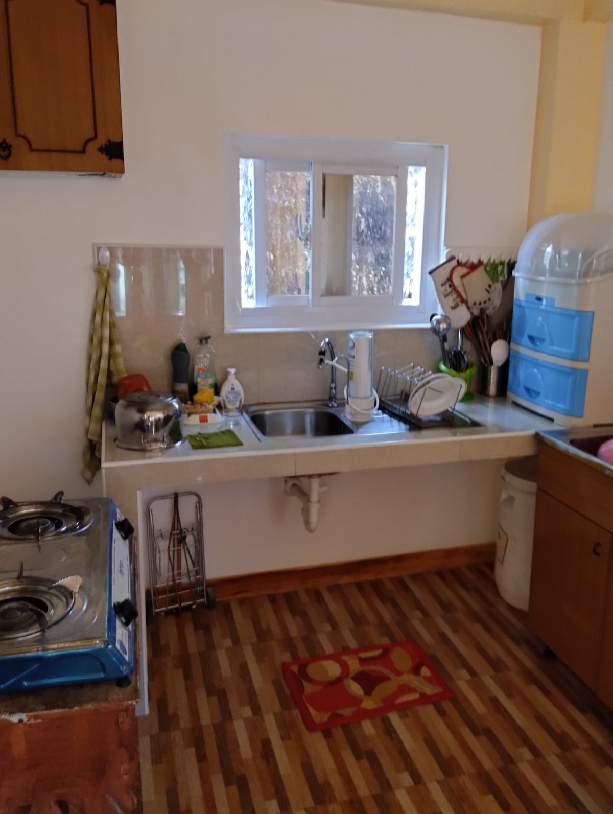 Vi erbjuder hela huset med 1 sovrum till ett mycket överkomligt pris... kompletta bekvämligheter och rymmer högst 7 gäster (eller fler om med barn)... det är en ensam hauz i en tomt på 300 kvm så det är idealiskt om du vill ha en avskildhet... ligger nära Daraga Doctor's Hospital och 7/11... bara 50 meter till riksvägen (Maharlika motorväg)