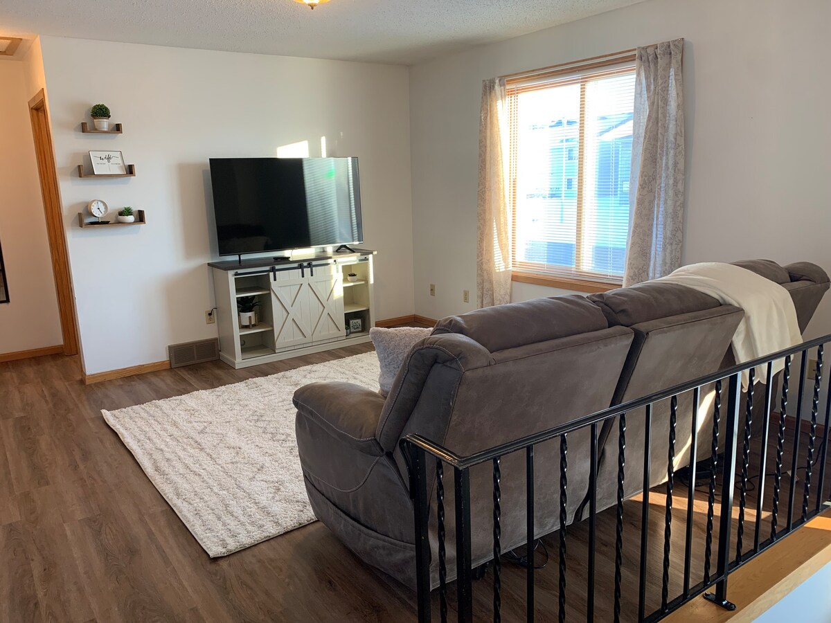 Lugnt, bekvämt 3BR/2.5BA townhome perfekt för resesjuksköterskor och läkare. Tvärs över gatan från UnityPoint St. Luke's Hospital, med snabb tillgång till UnityPoint Downtown, Orpheum Theatre och Tyson Events Center. Inkluderar en dedikerad arbetsyta. Grandview Park ligger på bakgården. Anslutet garage på källarplanet ingår i vistelsen. Foton är representativa; mindre variationer kan förekomma. Boendet ägs självständigt och är inte anslutet till UnityPoint Health.
