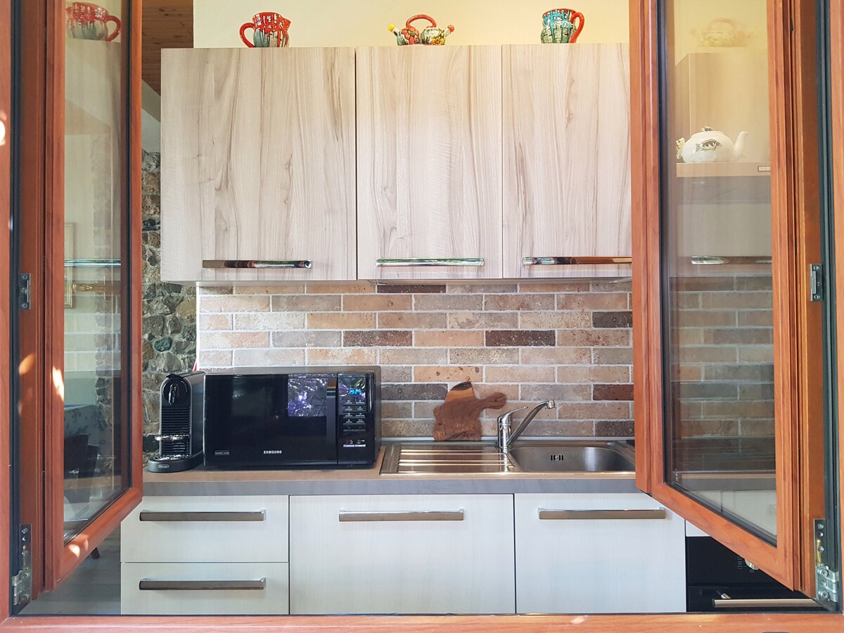 Lägenhet renoverad 2020 omgiven av olivlund och skog, belägen på en vandringsled, privat parkering, stora uteplatser, utsikt över sjön och havet. 1 sovrum med dubbelsäng, 1 vardagsrum med bäddsoffa, (123 x 189 cm.) TV, Mac + bärbar WiFi, yogautrustning, badrum med dusch, utrustat kök. Myggnät och luftkonditionering. Delad pool (diameter 3,5 m, 120 cm djup) under de varma månaderna. Gym på 9 kvm. 200 meter grusväg i uppförsbacke för att nå huset.