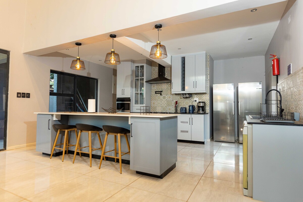 Ett vackert 5 sovrum hem i hjärtat av Victoria Falls, beläget i en lugn lummig förort. Detta boende kommer med alla faciliteter du behöver för en fantastisk hemvistelseupplevelse, stort kök, pool och underhållningsområde. Aj och Jess dina värdar är här för att ta hand om allt du behöver och kan enkelt ordna transport och aktiviteter. Catering kan inkluderas om du inte vill tänka på matlagning.