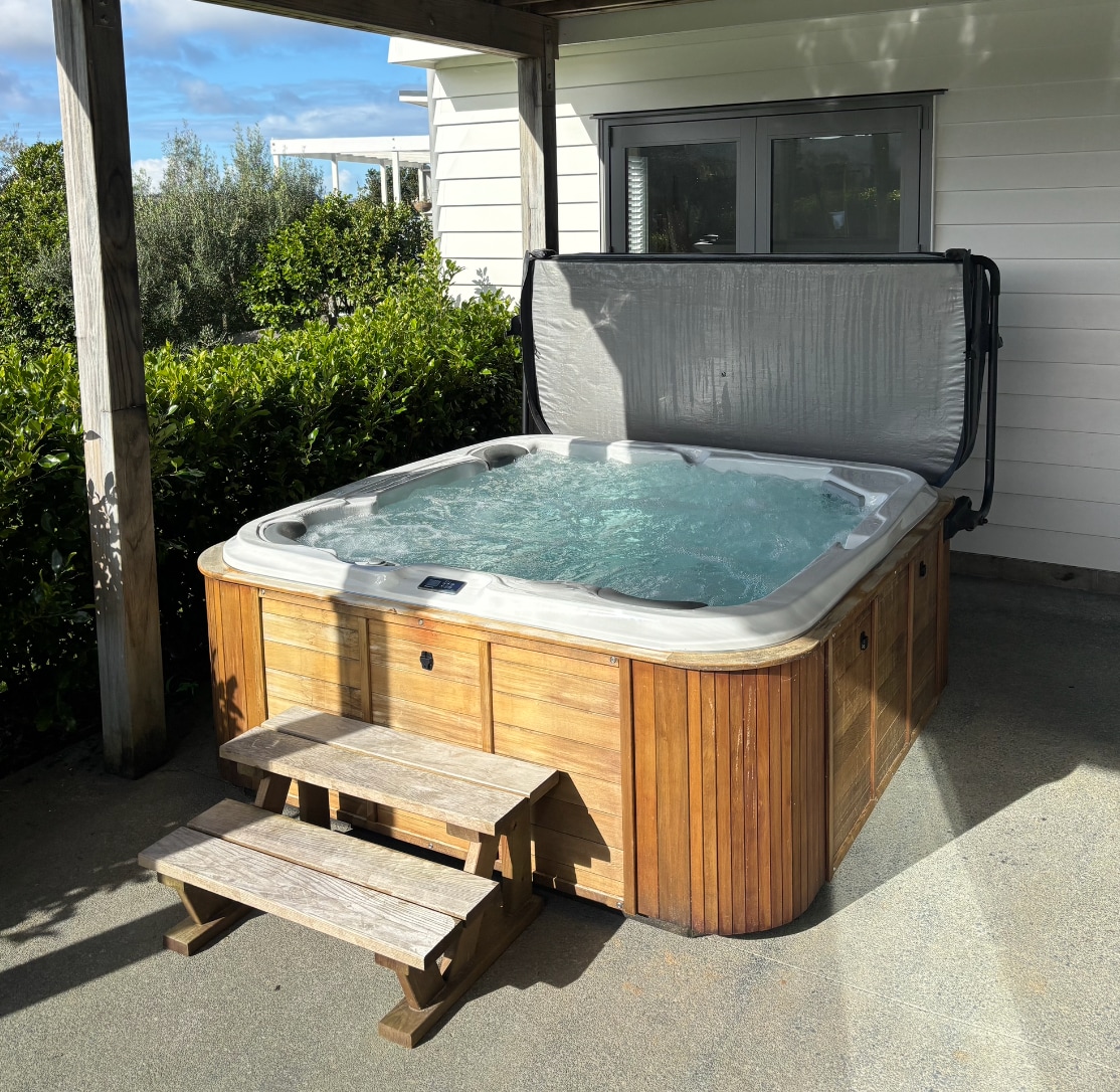 Sitt i spapoolen och njut av fantastisk utsikt över Matakana-dalen i fullständig avskildhet när solen går ner och stjärnorna dyker upp på den mörka himlen runt omkring dig. Lyssna efter Kiwi-samtal från Mt Tamahunga. Ät middag i närliggande Leigh (15 min) eller Matakana (30 minuter). Vi är bara 1 1/4 timmar från Auckland.