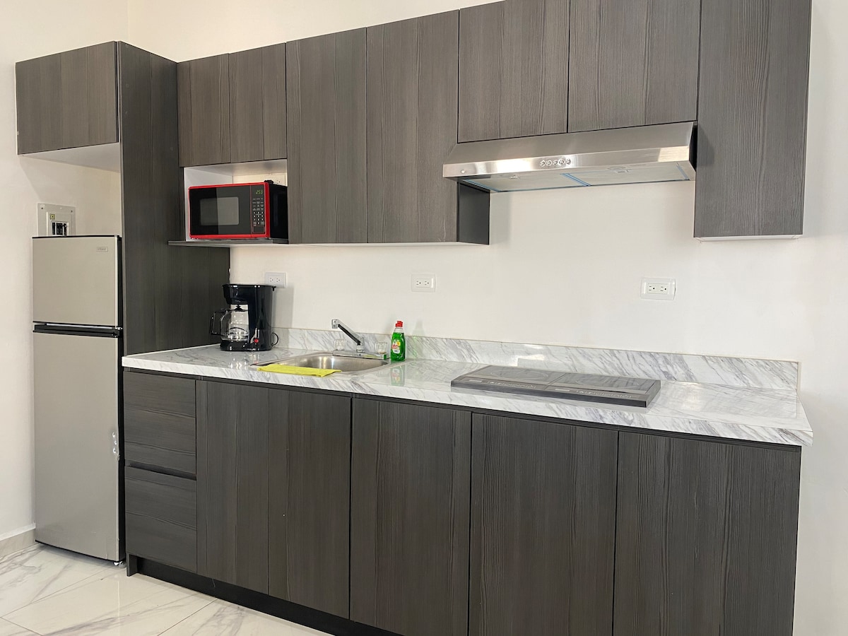 "Njut av en modern, elegant och perfekt belägen lägenhet i ett centralt, säkert och lugnt område. Den har ett fullt utrustat kök, vardagsrum, matrum, två sovrum, fullt utrustat badrum och två mini-splits för din komfort. Perfekt för vila eller arbete bekvämt, nära till köpcentra, restauranger och huvudgator.