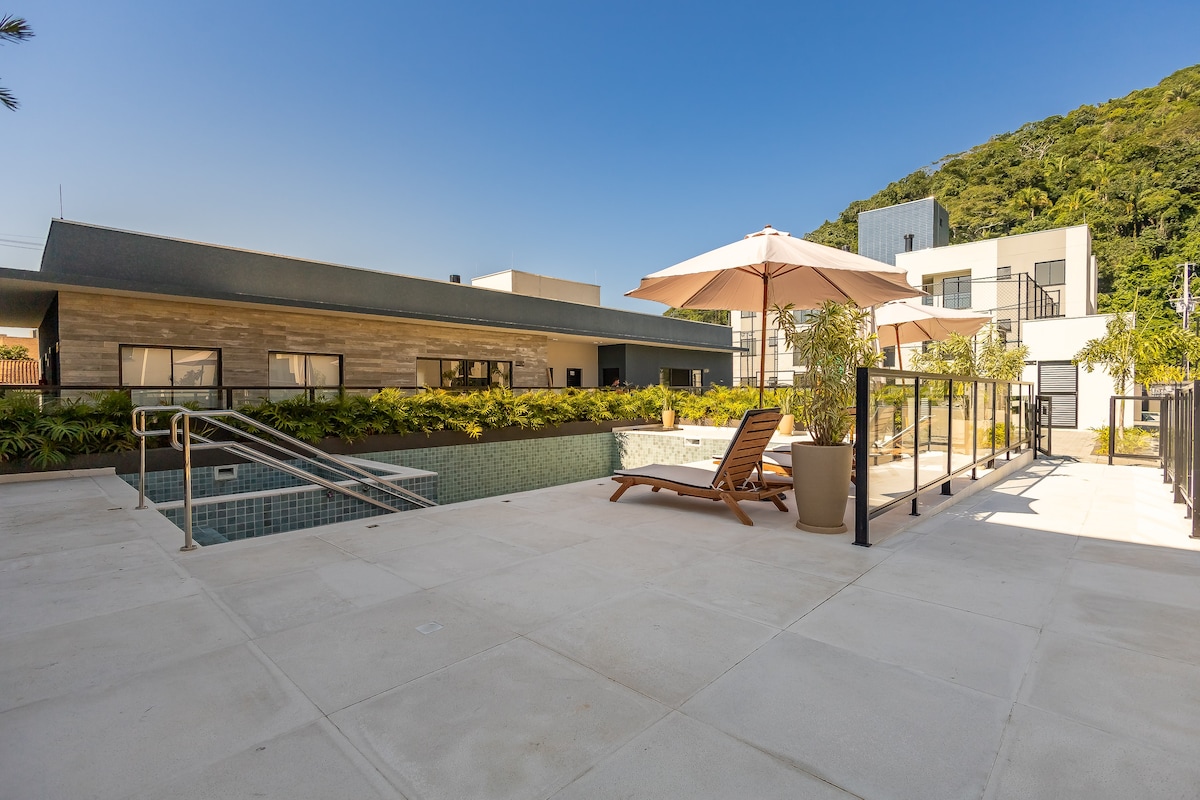 Apartamento completo e recém-reformado, com lava-louças e máquina lava e seca — conforto e praticidade para você curtir as férias sem preocupação! Inclui cafeteira, cozinha equipada, cadeiras de praia e guarda-sol. Condomínio com piscina, academia, quadra e brinquedoteca. Comércio a poucos metros. A Praia Brava fica a 7 min a pé e a Praia Mansa a 14 min.