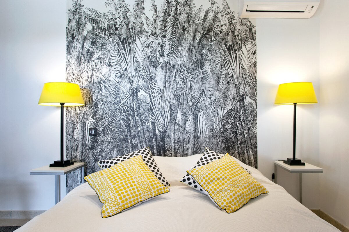 Välkommen till vårt charmiga bed and breakfast mitt i Montpellier, bara 10 minuters promenad från tågstationen och 500 meter från spårvagnslinjerna 2 och 3. Njut av alla bekvämligheter i närheten. Vårt boende har ett individuellt garage och en pool att svalka sig på soliga dagar...! Koppla av på utomhusterrassen och sov lugnt, tack vare den reversibla luftkonditioneringen