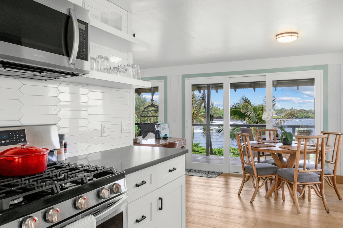 Det utstrålar komforten och atmosfären i ett autentiskt hawaiianskt strandhus och ligger i ett eftertraktat, avskilt läge, inbäddat vid havet i utkanten av Hana Bay, med ett öppet vardagsrum och ett täckt havsdäck med fri havsutsikt. En stuga med ett sovrum och ett badrum erbjuder inomhus- och utomhusvardagsrum och matplatser. Att lyssna på ljudet av vågorna som slår mot Waikaloa Black Rock-stranden kommer att vara ditt soundtrack för att följa med en utsikt på första raden över spektakulära soluppgångar och solnedgångar.