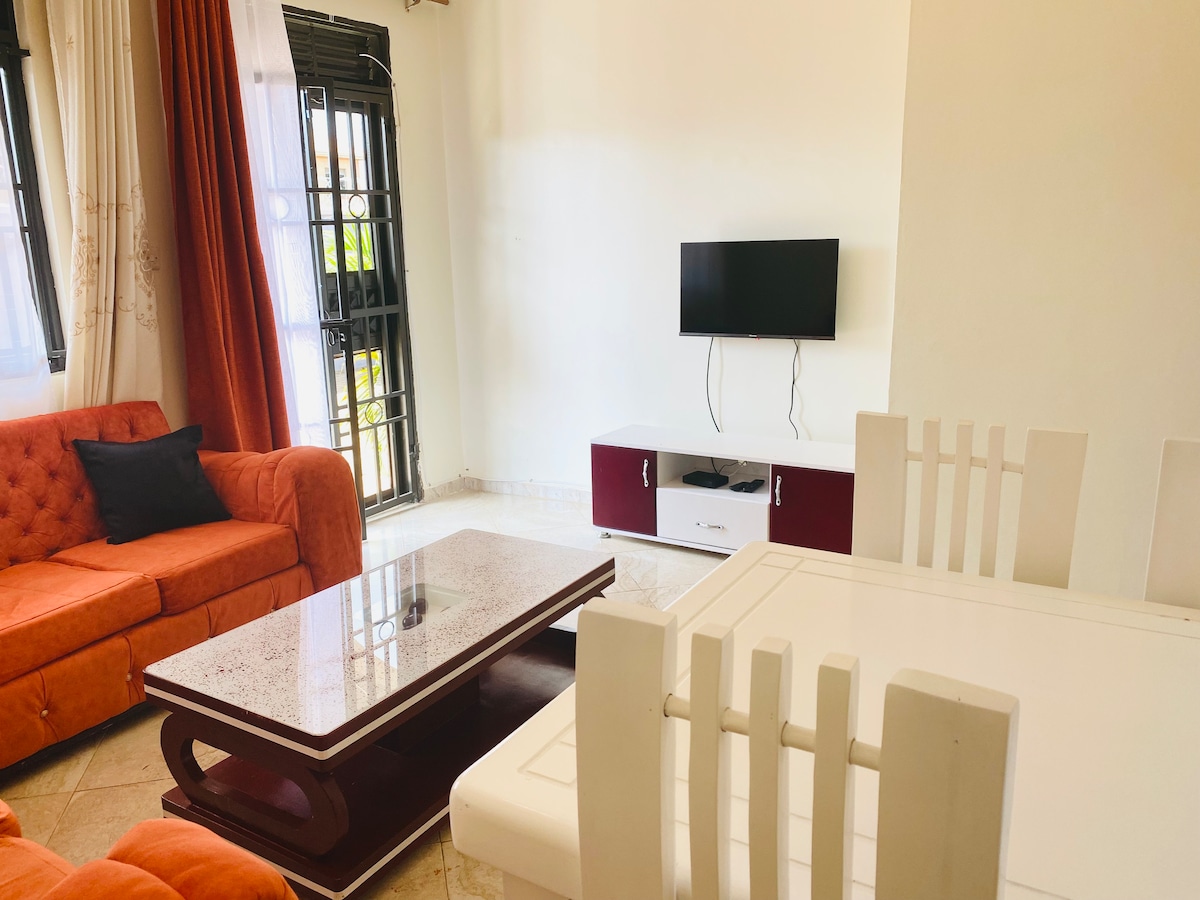 This is a Beautiful spacious ,charming, studio furnished and serviced apartment in the heart of Entebbe, just next to via via travelers cafe. We offer free Breakfast. Perfect for weekend getaway ,staycation. Unbeatable Location just 15 minutes Away from Entebbe International Airport. Fully functional kitchen , king size bed , washing machine ,private bathroom, 65-inch tv ,Netflix and wireless Wi-Fi. Air conditioning,24 hours security guards with outdoor cameras and a stand by generator.