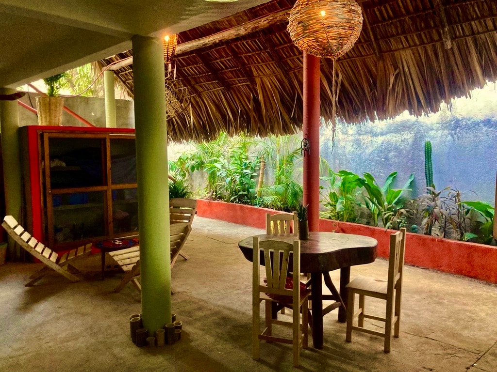 Med utsikt över Playa Zipolite, bara 5 minuters promenad från stranden och byn, har detta moderna öppna arkitekturhus 2 ljudisolerade luftkonditionerade sovrum med dubbelsängar, fullt utrustat kök, delat utomhusbadrum, trycksatt och renat varmvatten, moderna bekväma möbler, en liten dykpool med utsikt över stranden. Perfekt för 2 par eller 4 vänner att tillbringa flera dagar och njuta av det enkla, långsamma livet på Mexikos enda lagliga nudiststrand.