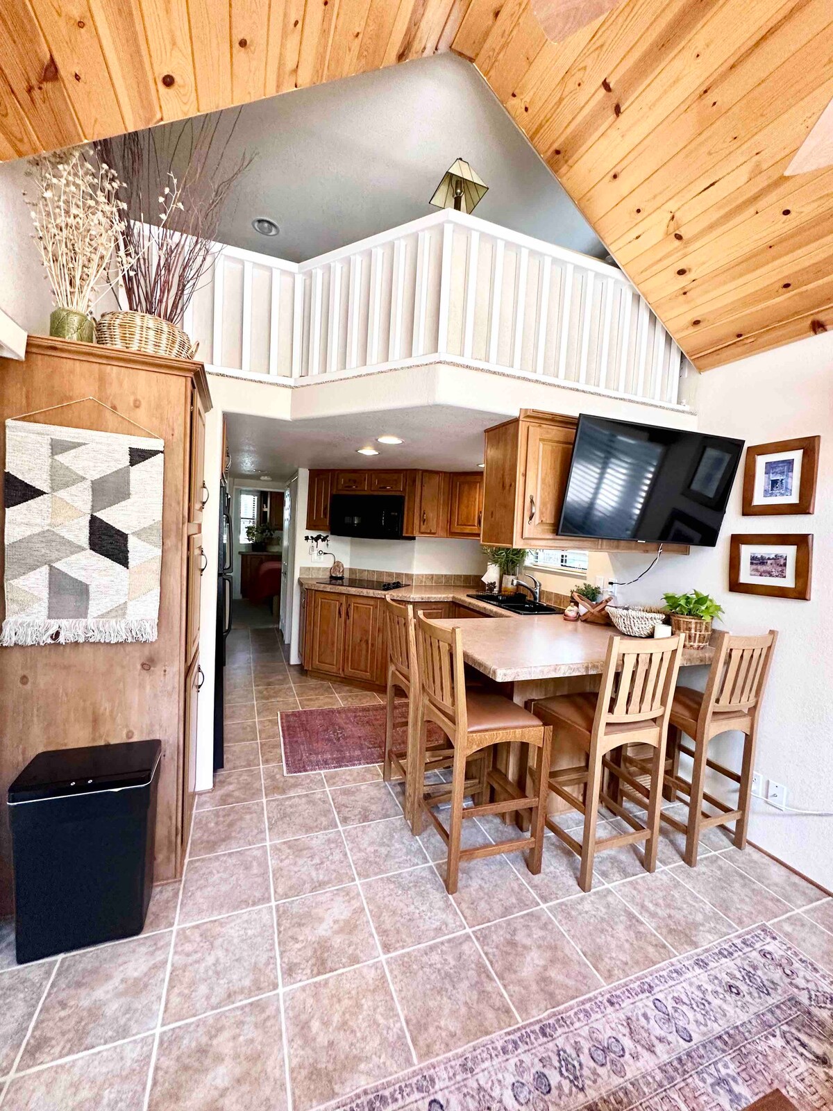 2 fantastiska skrivbordsstationer — 1 på nedervåningen med stående skrivbord och 1 skrivbord på loftet, båda utrustade med 22-tums bildskärmar, HDMI-kablar och massor av kontakter. 1 sovrum på nedervåningen med mysig dubbelsäng och tillgång till fullt badrum, 500 kvm loft med 2 dubbelsängar, dagbädd, pack and play, 2 TV-apparater och 1/2 badrum. Six Pines Lodge Hexagon Äkta timmerstuga! Helt inhägnad och husdjursvänlig! Ta bara med dina toalettartiklar och njut av de vackra Arizona White Mountains!