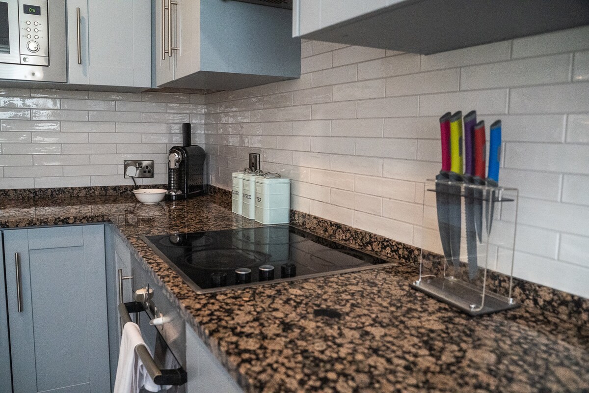 Denna eleganta moderna lägenhet är det perfekta stället att koppla av och koppla av för korta och medelstora vistelser. Helst passar detta pars svit för två personer och en extra pälsbaby om du tar med dig hunden. Själva enheten har ett fullt möblerat vardagsrum med TV & soffa och pentry komplett med kylskåp frys, mikrovågsugn och kokplatta för dem som vill själv tillgodose.